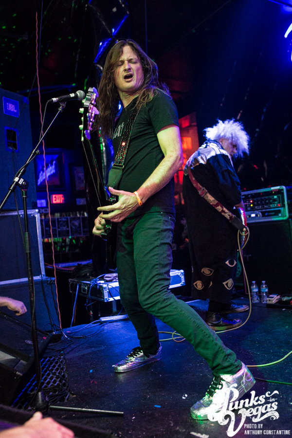 As The Melvins took the stage, the fans went wild and I saw that familiar gaze from frontman Buzz Osbourne to the crowd. I did notice that this time around not only was the bass player wearing a bedazzled shirt spelling out “bass,” but drummer Dale Crover had the same shirt spelling out “drums.” The identifying outfits weren’t the only change, though. The band’s stage presence was more in-your-face, present and chaotic than the last time I saw them.