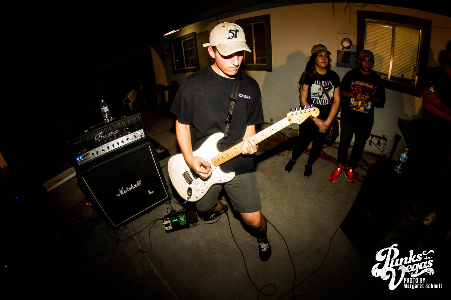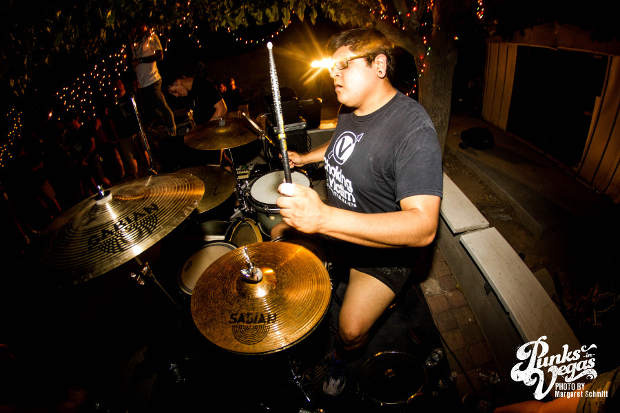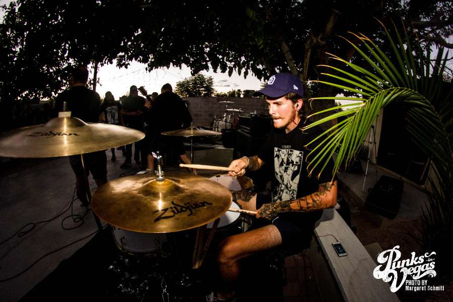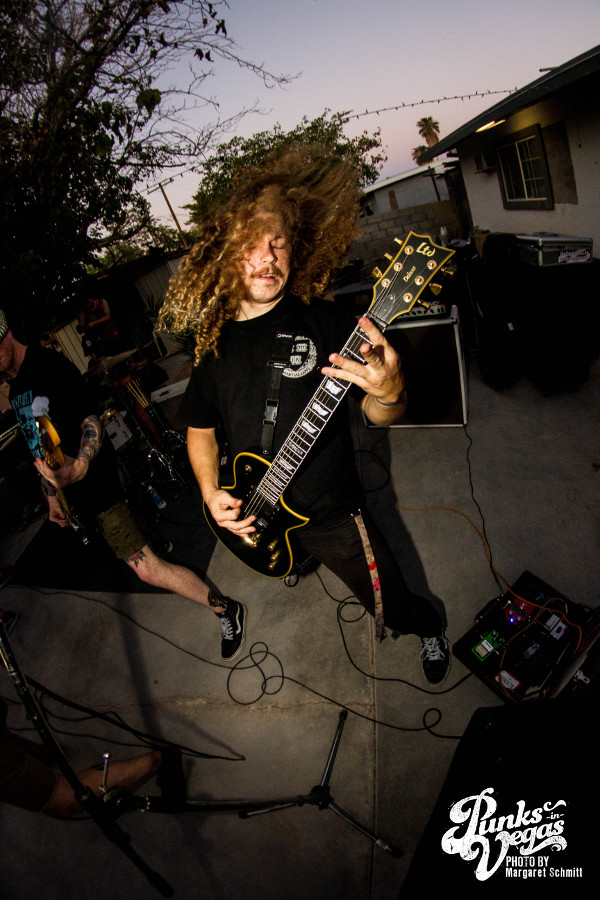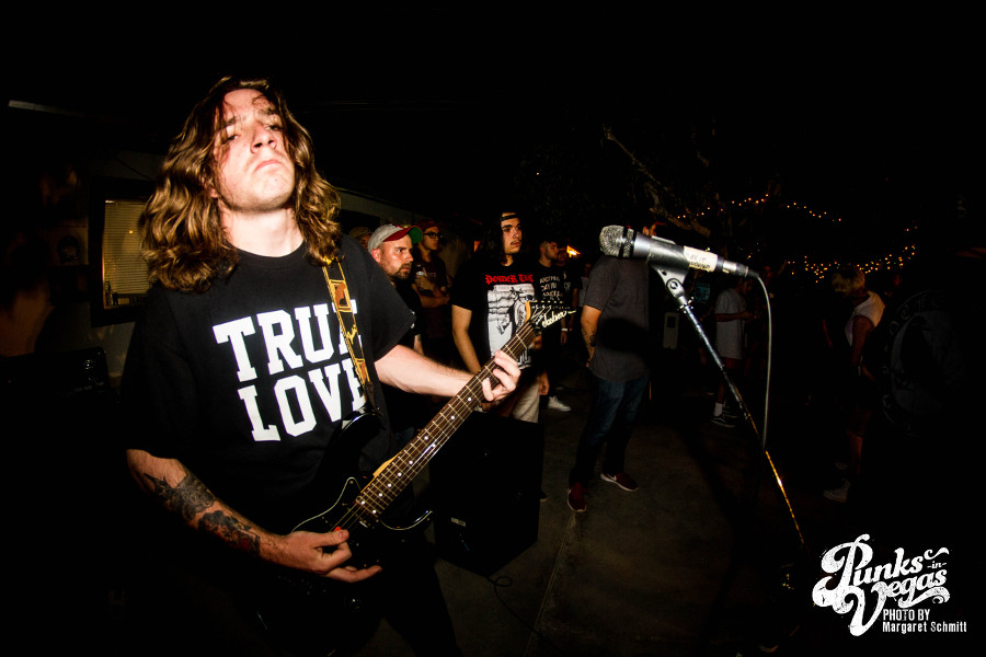 Things got a little heavier from here on out, as the touring bands went on. Lawton, Oklahoma melodic hardcore band Valleys, Tucson, AZ hardcore band Colonist and West Covina, CA melodic hardcore band Life Moves On left me speechless with their wild live show filled with unbridled energy. The pit kicked up and heads were banging as these bands blasted through song after song. Life Moves On particularly received a strong reaction for what I believe was the first Vegas show. The crowd was in and out of yelling at the singer’s face and the guitarist got so into it that he somehow fell, but kept playing.