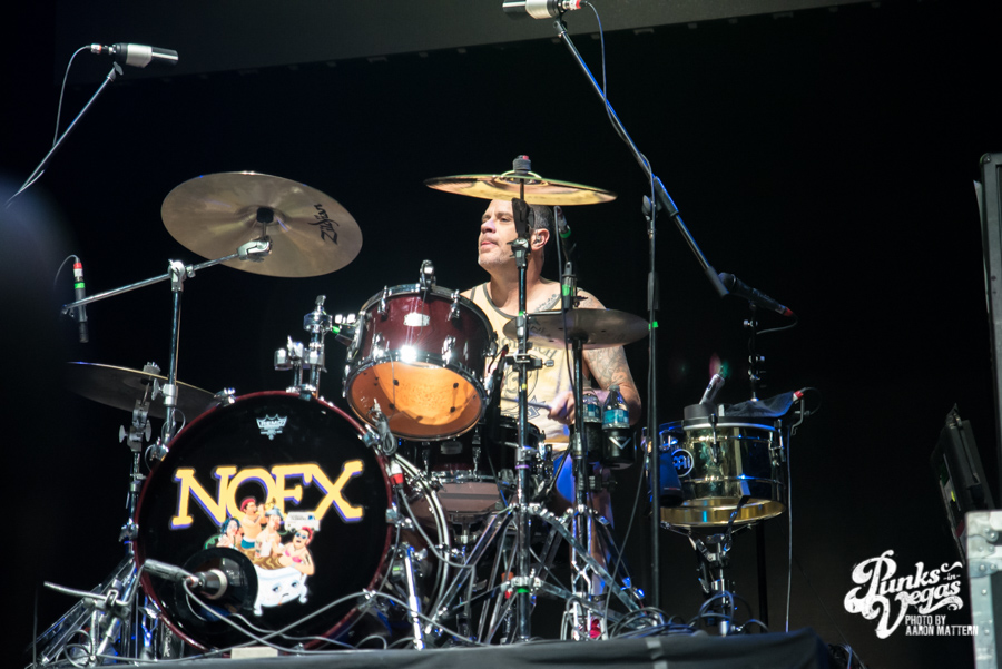 The band has never been one to stick to the “Less Talk, More Rock” philosophy, though this set featured significantly less banter than the band’s recent PRB performances (which, for the record, is still significantly more than most bands). The band’s main target? Matt Skiba. The Alkaline Trio frontman, best man at Fat Mike’s recent Vegas wedding, and current Tom DeLonge replacement was not only the butt of a few jokes, but the band’s background image during fan favorite “Stickin in my Eye.”
