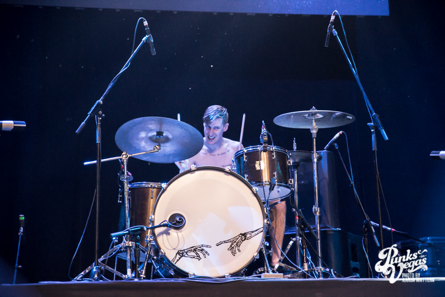 But as they played through songs like “Werewolf Shame,” “Snickers or Reeses” and “On and On” it quickly became apparent that they were born to rock the big stage. The antics of guitarist/frontman Nick Woods and guitarist Devon Kay get a chance to flourish when they have more room to prance around, especially when in front of an LED banner that misspelled their name as “Dip Shits.”