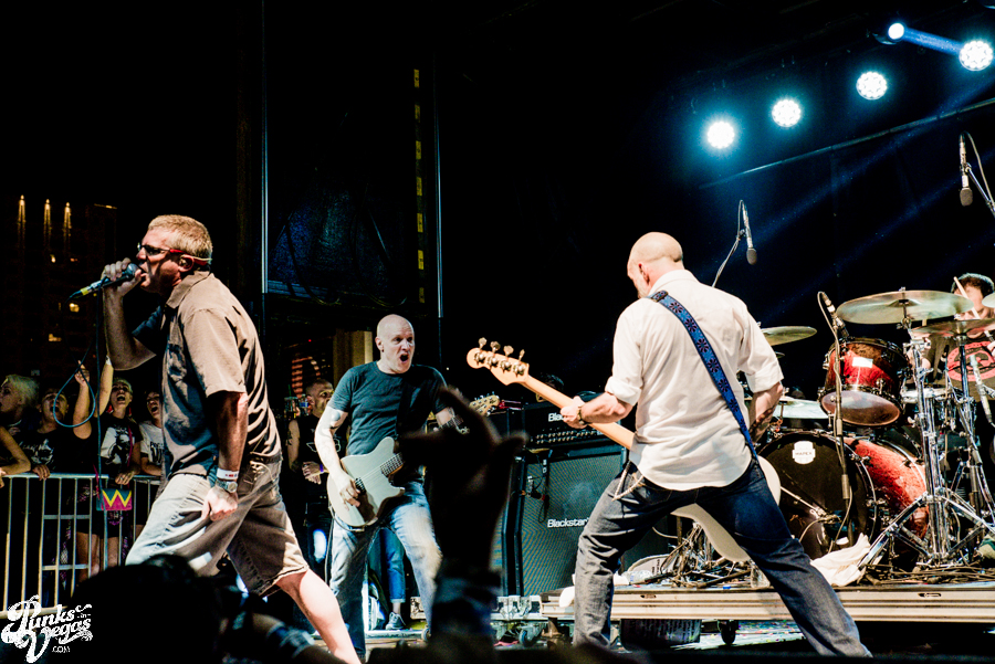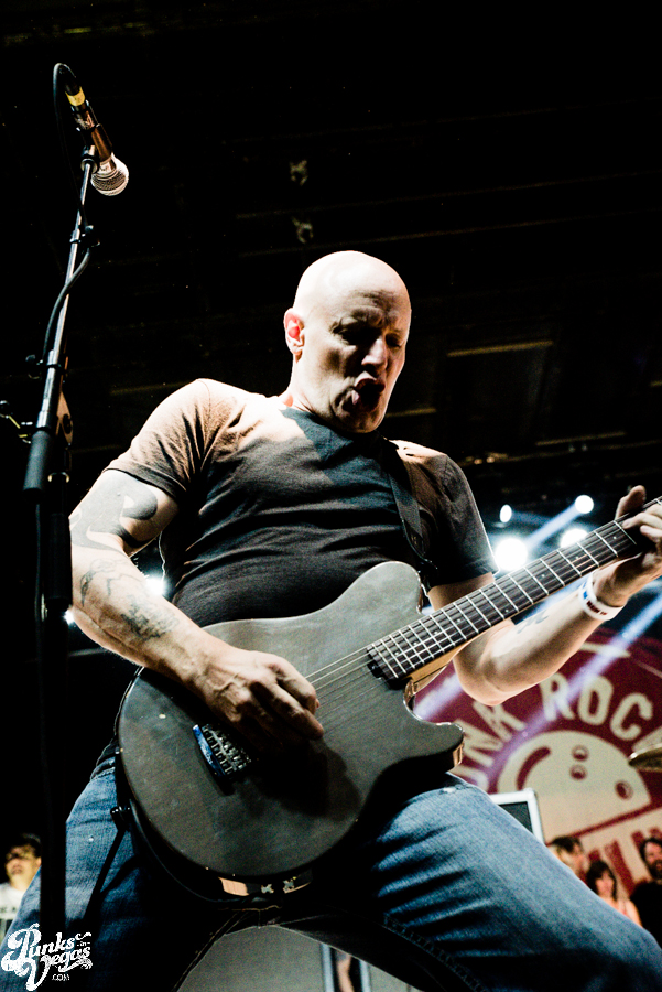 Victorville, California skatepunks and self-proclaimed disciples of Descendents Face to Face were in direct support, surprisingly marking their first appearance at Punk Rock Bowling. Face to Face is one of those rare types of bands that I feel sounds better in a large atmosphere than in a tiny club, so Punk Rock Bowling seems like a match made in heaven. The band’s songs have such an anthemic quality to them and sound so perfect with a chorus of 1,000 fans backing up frontman Trever Keith – especially on songs like “Don’t Turn Away” and “Disconnected.” Face to Face also got the silver medal for second most people crowd surfing during their set, behind only Leftover Crack on the third day. This unfortunately also led to the most fights with security, mostly involving those crowd surfers. I particularly liked that Keith was visibly stoked to be playing the festival, giving shout outs to Descendents, a band that obviously influenced his band’s sound (a cover of Descendents’ “Bikeage” is a staple of Face to Face live shows), by saying he’d be the “old, sweaty guy standing on the side of the stage singing every word” and also giving a shout out to Masked Intruder, who he said is his favorite new band.