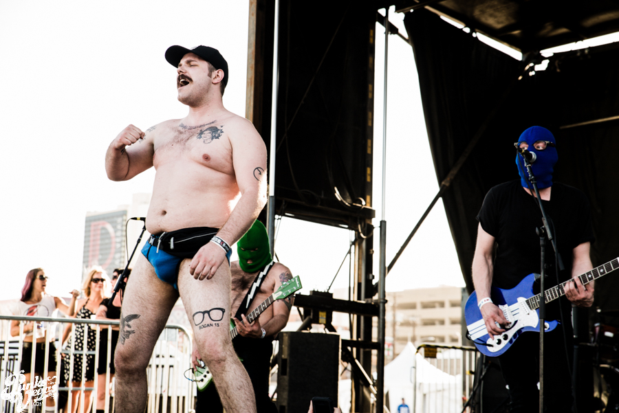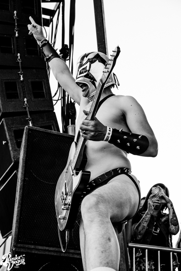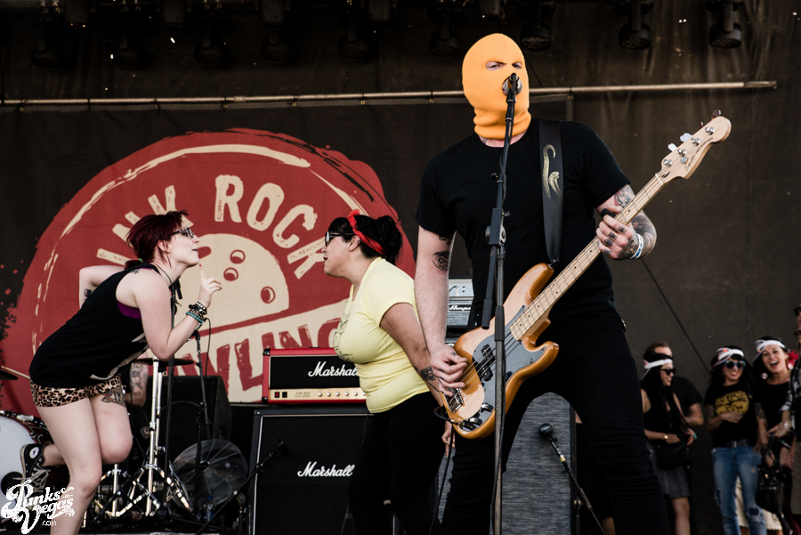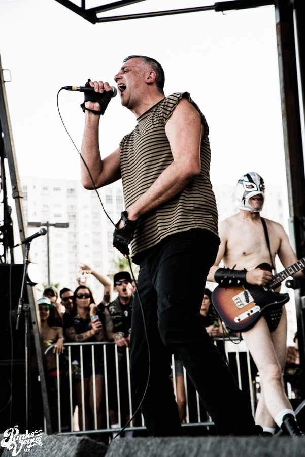 Vegas’ own The Objex started out the day, giving the Dwarves a run for their money when it comes to being the most provocative band on the bill. Frontwoman Felony Melanie’s flexibility and short dress left little to the imagination, and the crowd loved it. The first spot of the day is difficult, as many are recovering from the night before and haven’t made it through the doors, but those who were there were right up against the barrier with smiling faces. You can check out our full stream of the new Objex record here.