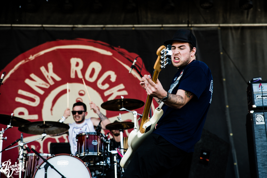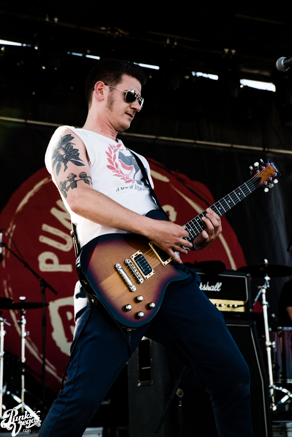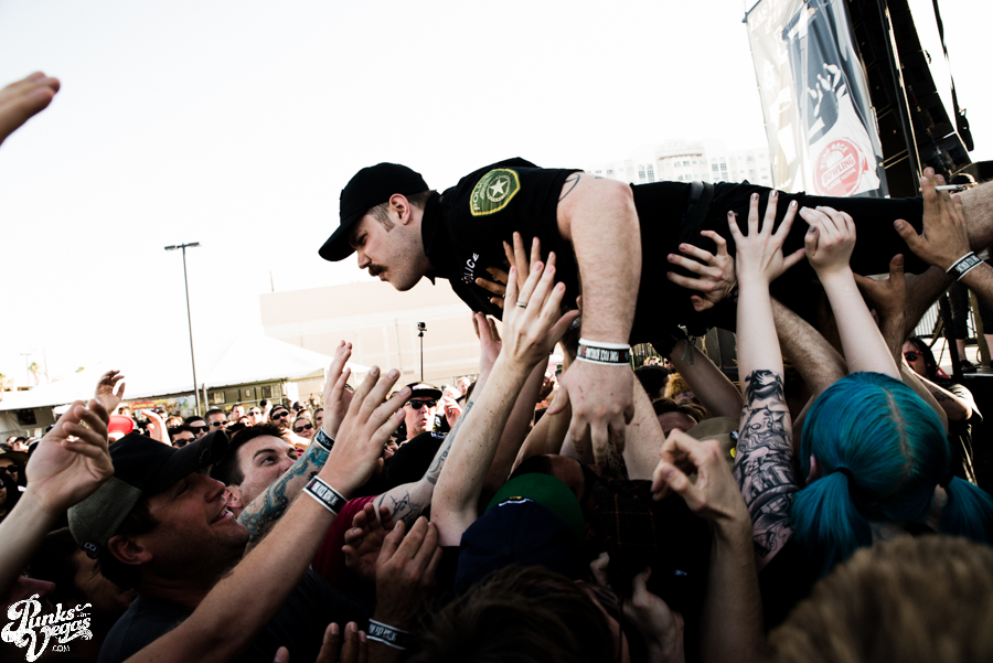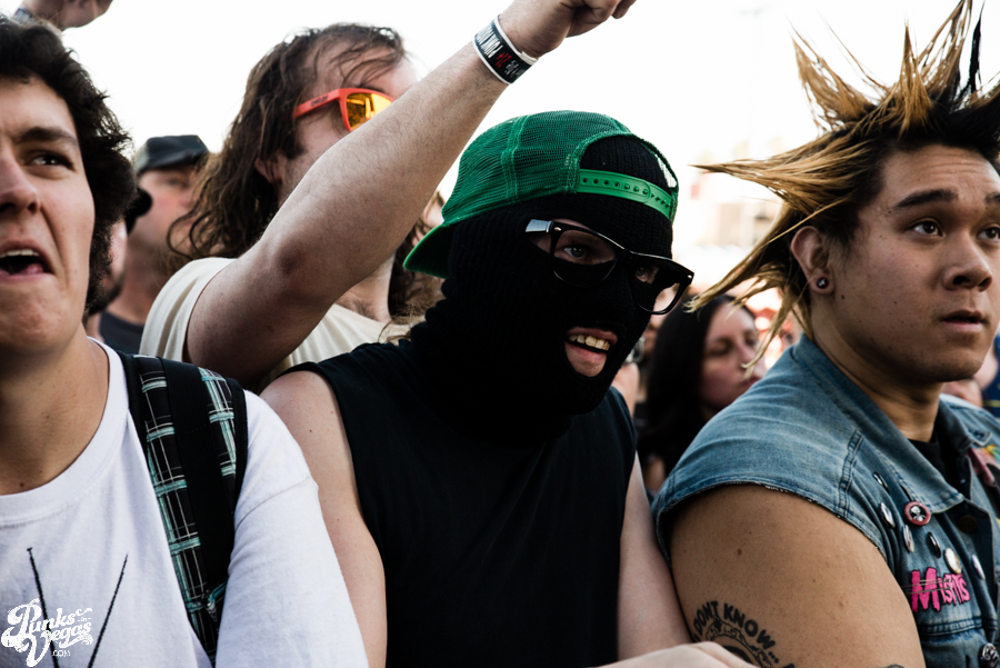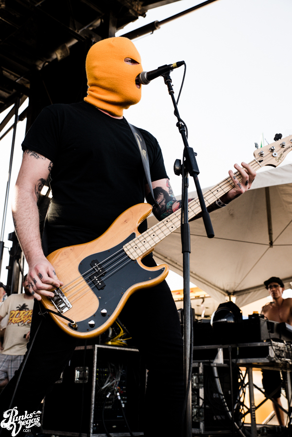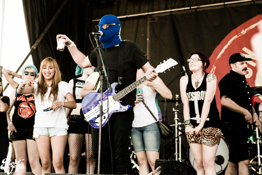 Pop punk crooks Masked Intruder made their maiden appearance at Punk Rock Bowling this year, filling an early slot oftentimes awarded to humorous, gimmick-laden bands (see Tartar Control last year). Having seen the band first in a bar and then the Hard Rock Live, I was curious to see what they’d bring to the larger setting. Between Green’s epic jumps and hypeman Officer Bradford’s stage dives, the band quickly won over the crowd. They played a bunch of new tracks from their then-not-released sophomore album M.I. and ended their set by inviting all the female fans up on stage for a dance party. New song “Crime Spree” became an instant jam and seeing so many people snapping, clapping and singing along to “I Wish You Were Mine” was a great thing to be a part of. Masked Intruder was one of only two bands this weekend where I had to pack up my camera gear and make my way past the pit to the barrier to sing along, and I’m glad I did.