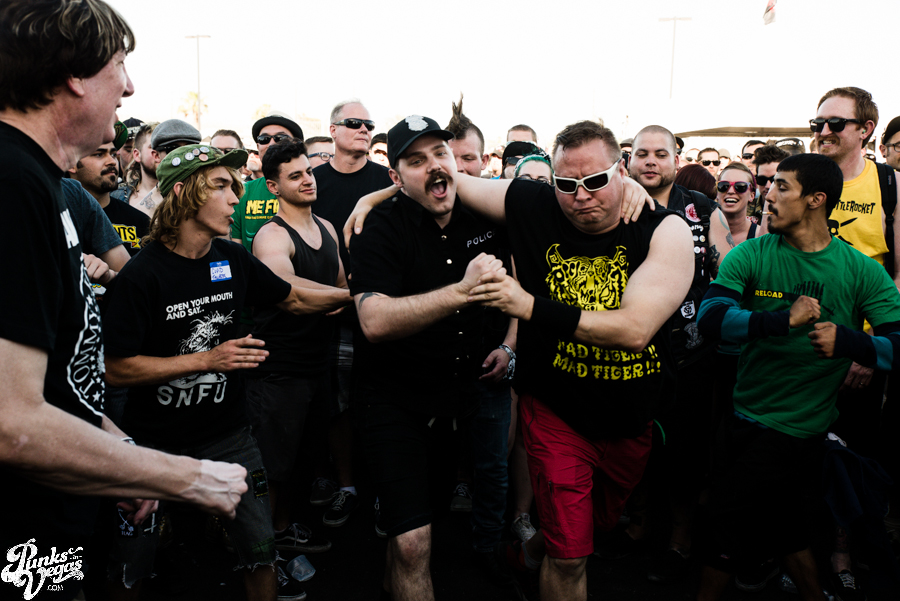 Every year I look forward to Punk Rock Bowling just a little bit more. Where else can you find people still decked out in their finest leather bondage pants when temperatures are reaching over 100 degrees? Due to groomsman duties in a friend’s wedding, I missed out on the first day of the festival, so I came in bright and early on the second day ready to socialize, drink $3 water and listen to some rad music. Big thanks to the Sterns, not just for bringing the Descendents to Vegas again, but for giving me a weekend where I get to hang out with great friends from all over the country, and I’m not the only one geeking out about getting a picture with Officer Bradford.