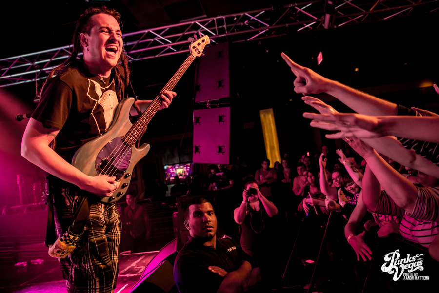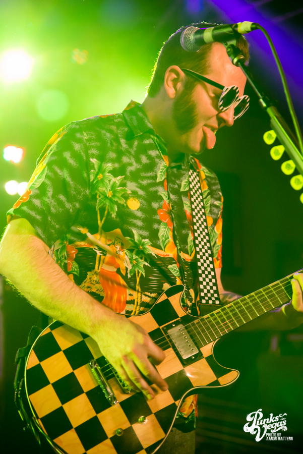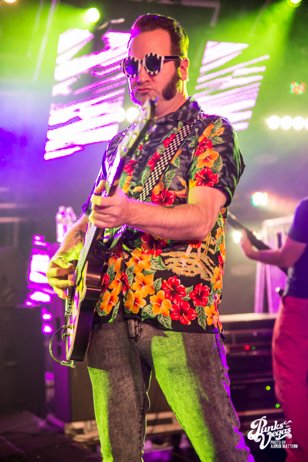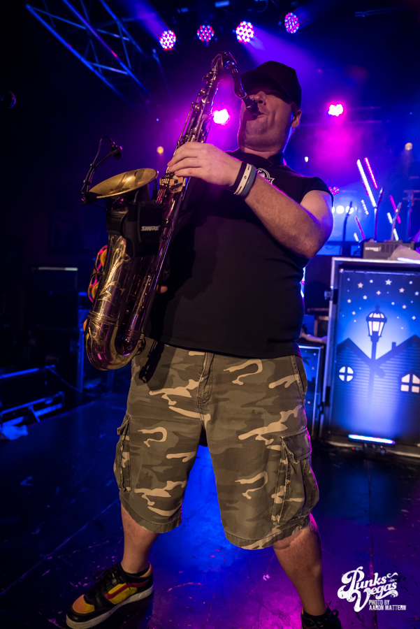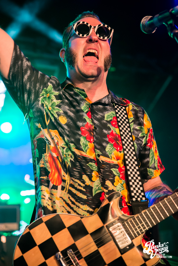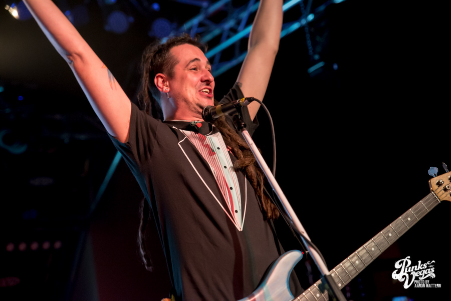 Reel Big Fish are pretty much the poster boys for ska, and they headlined this Valentine’s Day show with upbeat tunes and a party atmosphere. The stage wasn’t as decorated and theatrical as I was expecting, possibly due to the size of the venue. All six members of the band had to decorate themselves instead, each showcasing their own unique style of dress. Trombonist Billy Kottage, for example, was in a full suit, but wore “formal” shorts instead of dress pants. Lead singer Aaron Barrett, not to be outdone, wore a pair of ska-themed sunglasses and a tie, while playing a checkerboard guitar.