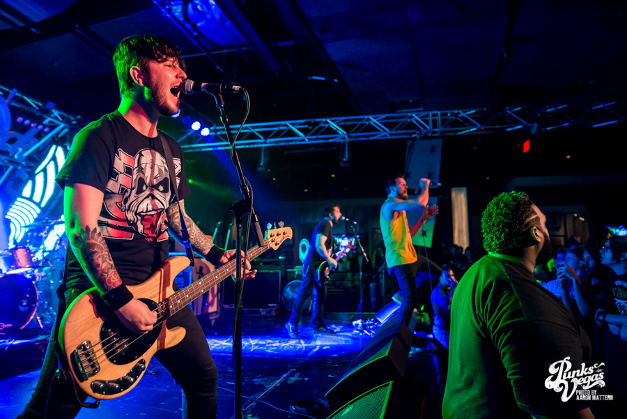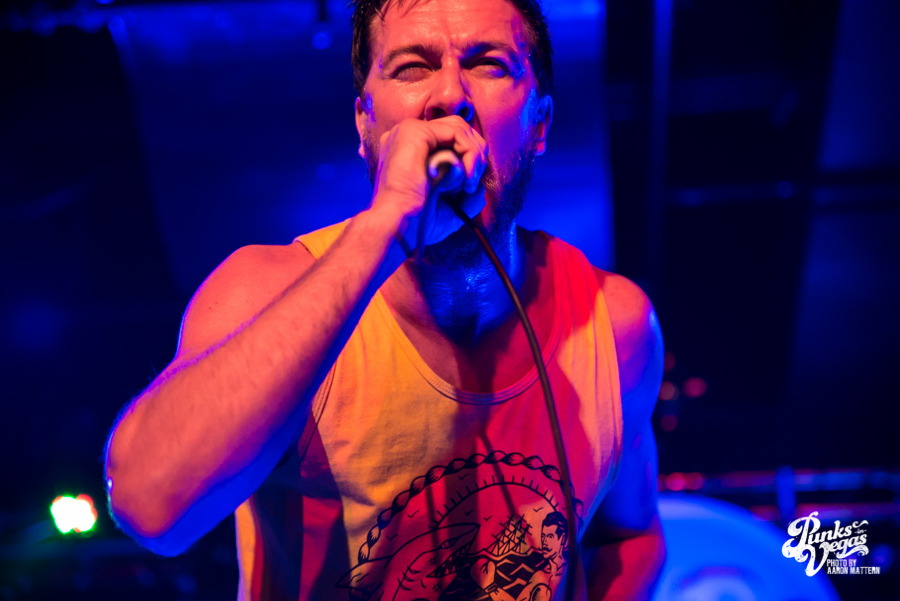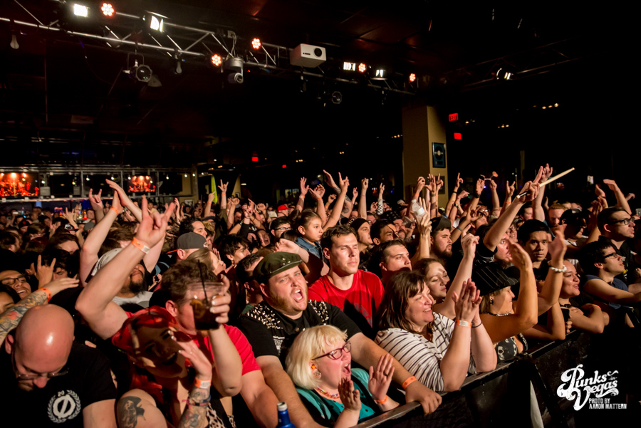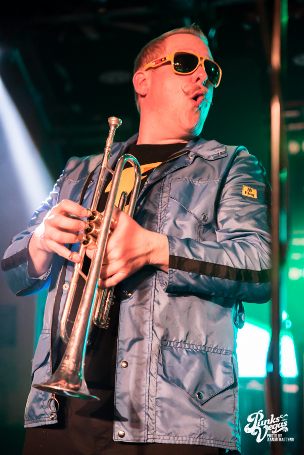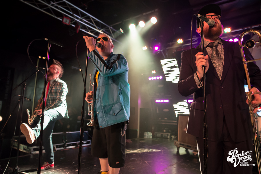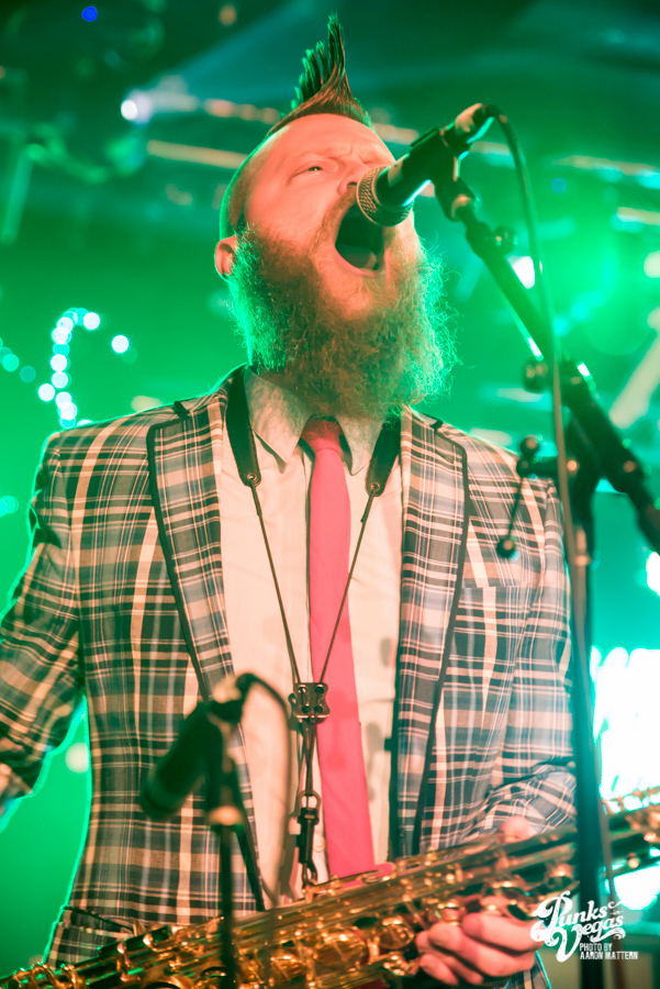 Keeping with the Valentine’s Day theme, two single teenagers, Danny and Jocelyn, were brought up on stage to kiss during the set. Jocelyn decided to only dance with Danny, so a second girl came on stage and did it (maybe 2 is a lucky number for Less Than Jake?). Less Than Jake jokingly announced that they had been hired to write a jingle for the Pac-Man cereal re-release, which is supposedly in August. I’m willing to bet that a majority of the crowd (including myself) wasn’t even born when Pac-Man cereal was on shelves back in the 80s, but that didn’t stop people from singing and dancing along.