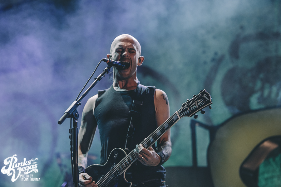 The band opened with “My Curse” and transitioned right into hit after hit including “Beyond the Flames,” “Life to Lifeless” and “A Bid Farewell,” the latter dedicated to tourmates Rise Against. Guitar player Adam Dutkiewicz is known for his rather less than normal stage attire and tonight was no different as he sported some nice short shorts on stage despite it being a cool mid 40s in temperature with a breeze flowing through the venue. Rhythm guitarist Joel Stroetzel was absent this night due to leaving tour to be with family but luckily the band’s stage manager is a killer guitar player and was able to fill in on a few songs. Other notable songs played in the set were fan favorites “Rose of Sharyn,” “This Fire,” “Always” and “My Last Serenade.” The set came to end on possibly the band’s most popular hit “The End of Heartache” and it had all the Killswitch fans singing along.
