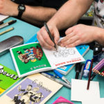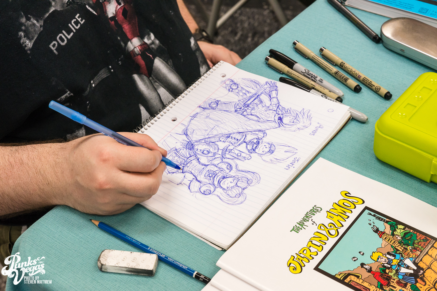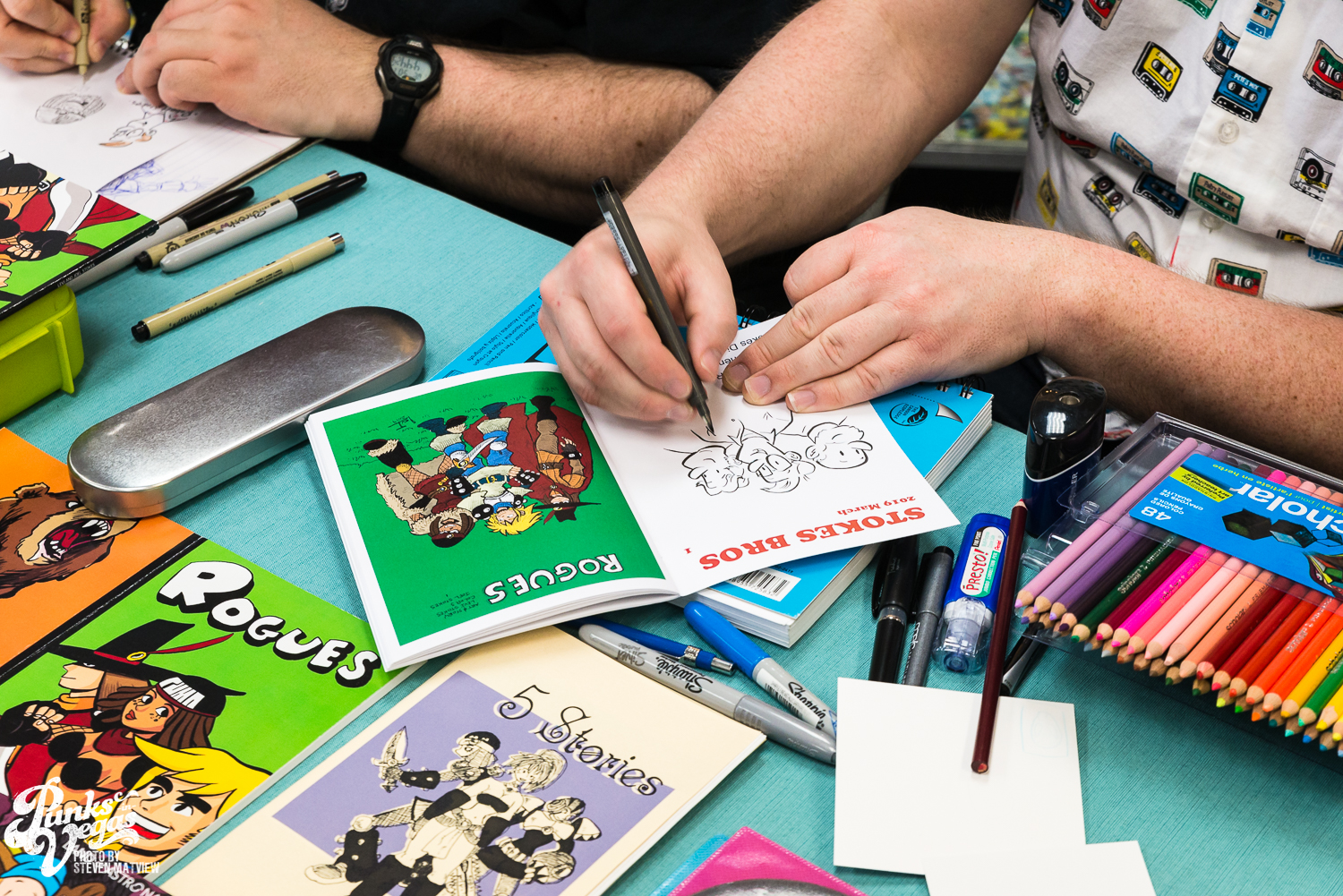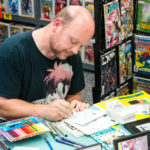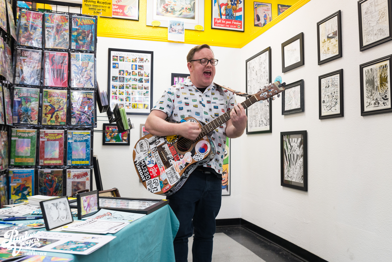 The Stokes Brothers – Joel, Robert and Levi – are this month’s artist spotlight at Alternate Reality Comics. To celebrate the gallery opening, Robert played a solo set on May 1. Interested in seeing the art for yourself? Head out to Alternate Reality this Saturday, May 4, which is also Free Comic Book Day!