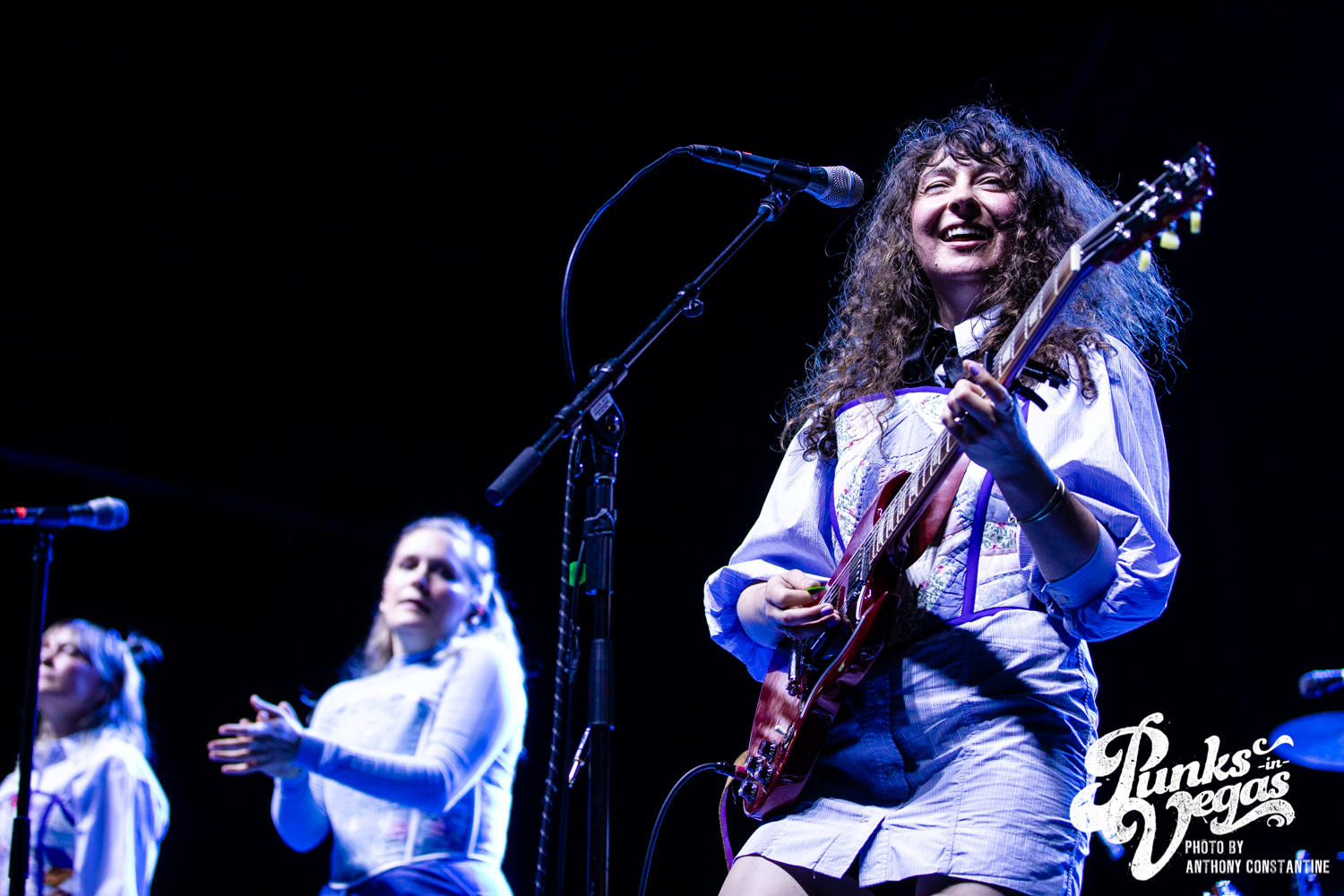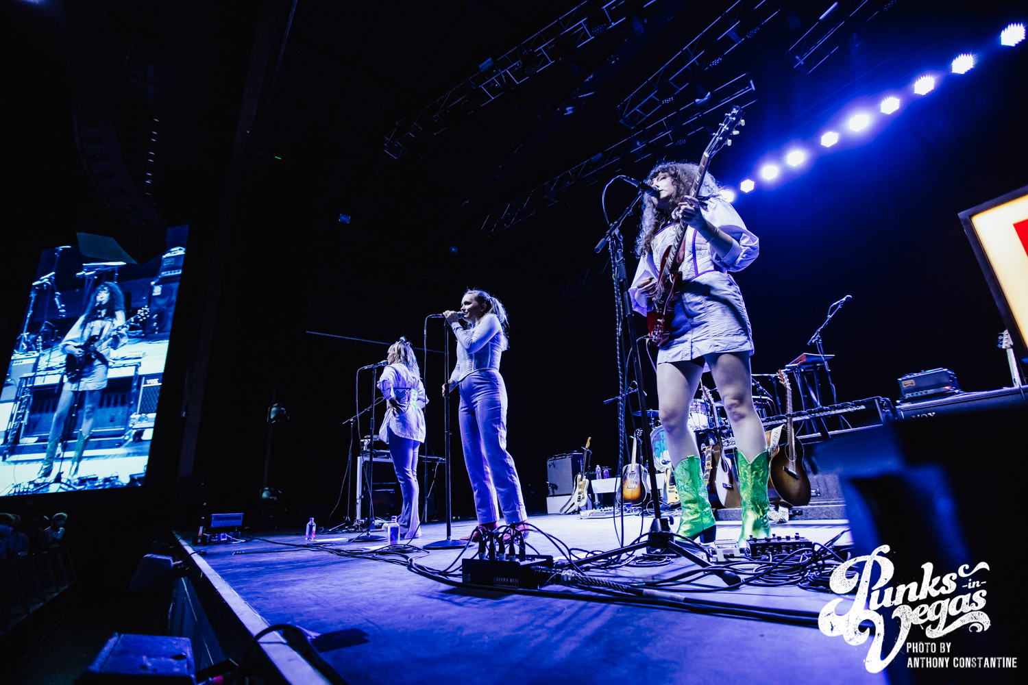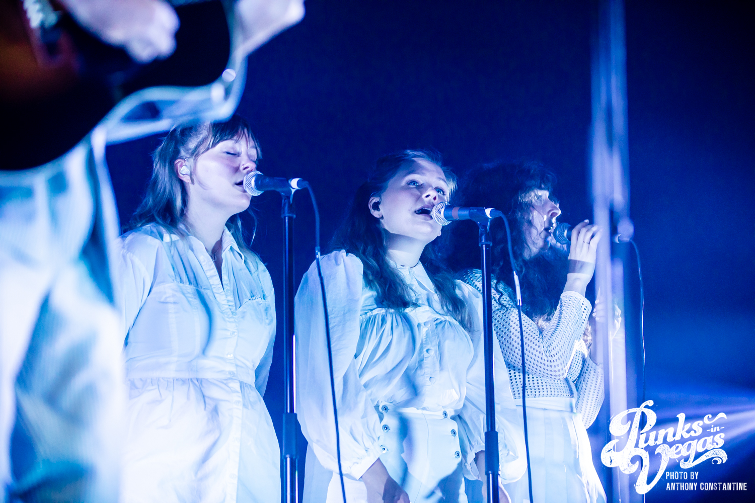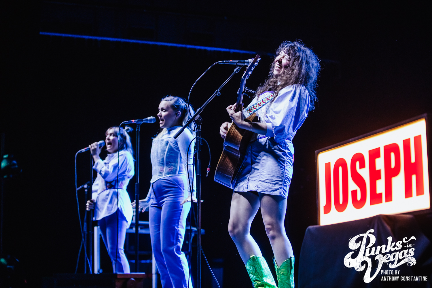 I wasn’t sure what to expect from the band Joseph, who opened the night, but I was blown away. The stage lights came up, revealing the Portland-based band comprised of three sisters. The band is fronted by Natalie Schepmand and her sisters, twins Allison and Meegan Closner. The trio took no time introducing themselves, their powerful vocals an introduction enough, and launched right into their first song of the night, “Planets.” The trios’ powerhouse harmonies captivated the attention of the audience immediately. I loved the simplicity of the performance, their unique voices intertwining and harmonizing while Schepman played primarily acoustic guitar stomping her neon green cowboy boots on a pedal for percussion. They played an unreleased song, “Fireworks,” inspired by the show Love Island that got significant reactions from the crowd and followed it up with a cover of Brittany Spears’ “Toxic.” The sisters ended their set to the sounds of loud cheers and applause and did a phenomenal job getting everyone excited for the headliner, The Shins.