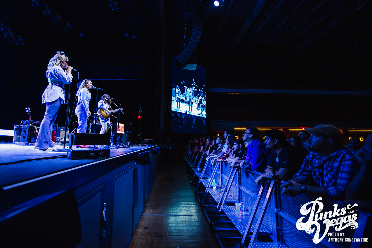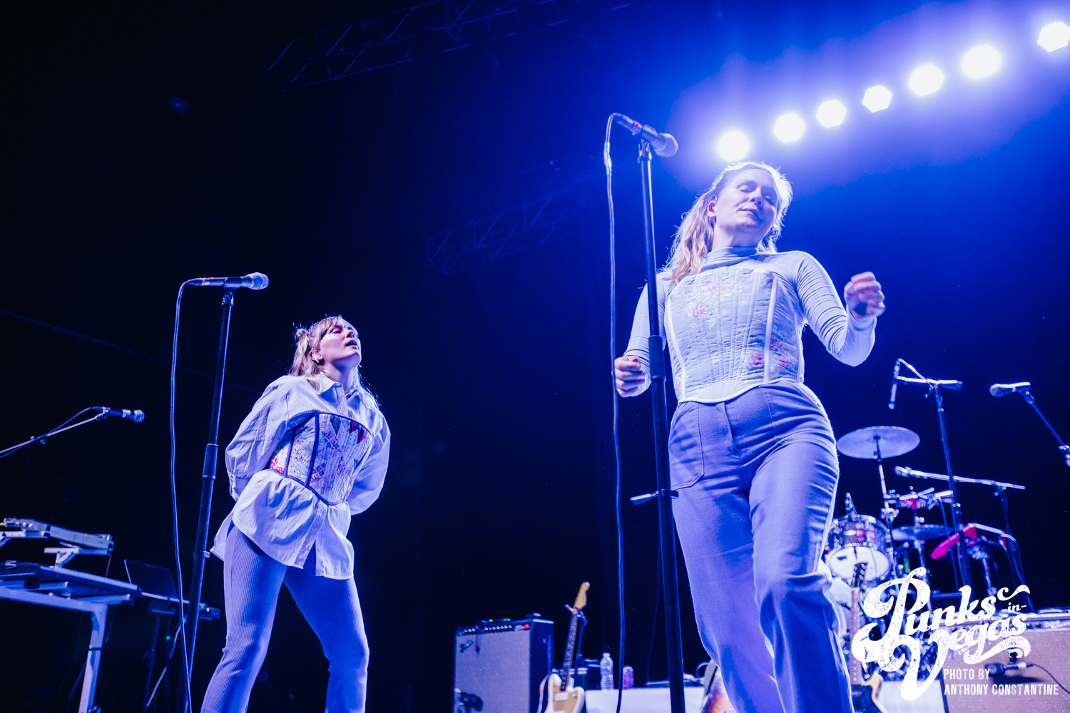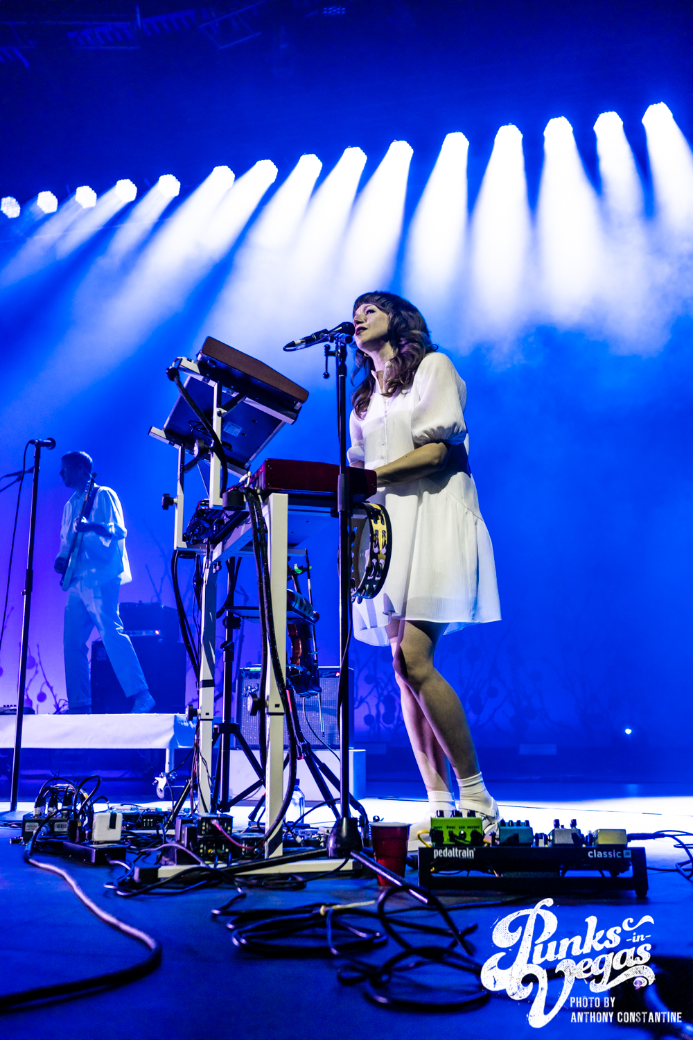 I wasn’t sure what to expect from the band Joseph, who opened the night, but I was blown away. The stage lights came up, revealing the Portland-based band comprised of three sisters. The band is fronted by Natalie Schepmand and her sisters, twins Allison and Meegan Closner. The trio took no time introducing themselves, their powerful vocals an introduction enough, and launched right into their first song of the night, “Planets.” The trios’ powerhouse harmonies captivated the attention of the audience immediately. I loved the simplicity of the performance, their unique voices intertwining and harmonizing while Schepman played primarily acoustic guitar stomping her neon green cowboy boots on a pedal for percussion. They played an unreleased song, “Fireworks,” inspired by the show Love Island that got significant reactions from the crowd and followed it up with a cover of Brittany Spears’ “Toxic.” The sisters ended their set to the sounds of loud cheers and applause and did a phenomenal job getting everyone excited for the headliner, The Shins.