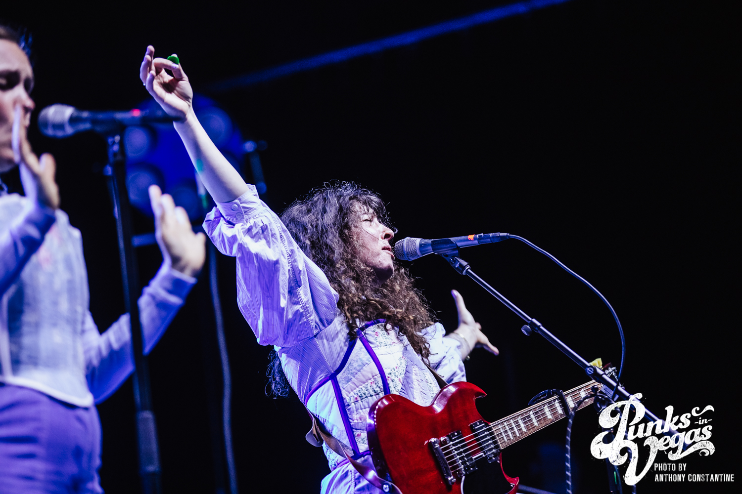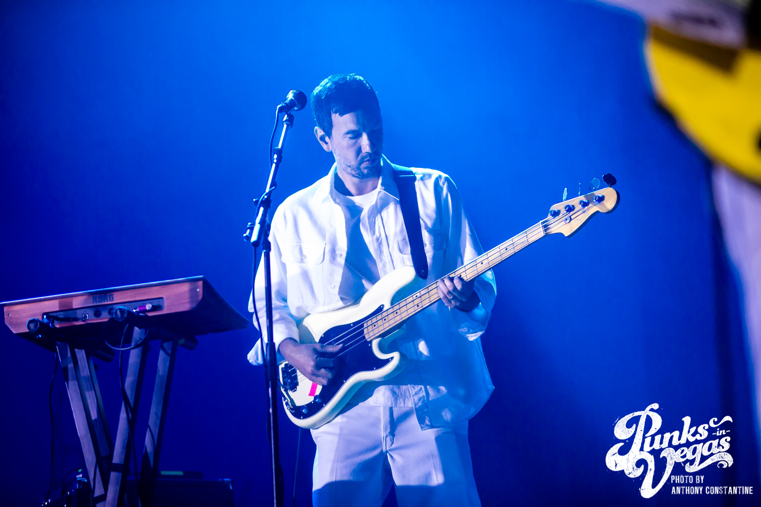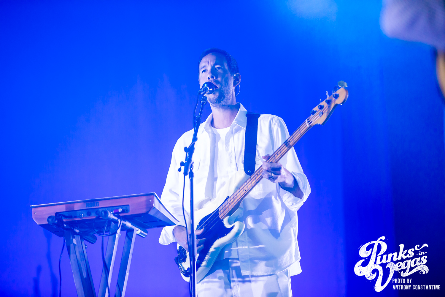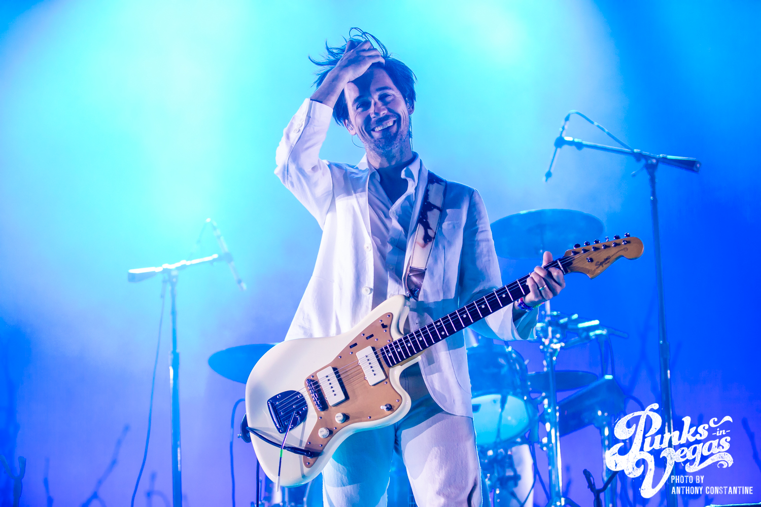 I wasn’t sure what to expect from the band Joseph, who opened the night, but I was blown away. The stage lights came up, revealing the Portland-based band comprised of three sisters. The band is fronted by Natalie Schepmand and her sisters, twins Allison and Meegan Closner. The trio took no time introducing themselves, their powerful vocals an introduction enough, and launched right into their first song of the night, “Planets.” The trios’ powerhouse harmonies captivated the attention of the audience immediately. I loved the simplicity of the performance, their unique voices intertwining and harmonizing while Schepman played primarily acoustic guitar stomping her neon green cowboy boots on a pedal for percussion. They played an unreleased song, “Fireworks,” inspired by the show Love Island that got significant reactions from the crowd and followed it up with a cover of Brittany Spears’ “Toxic.” The sisters ended their set to the sounds of loud cheers and applause and did a phenomenal job getting everyone excited for the headliner, The Shins.