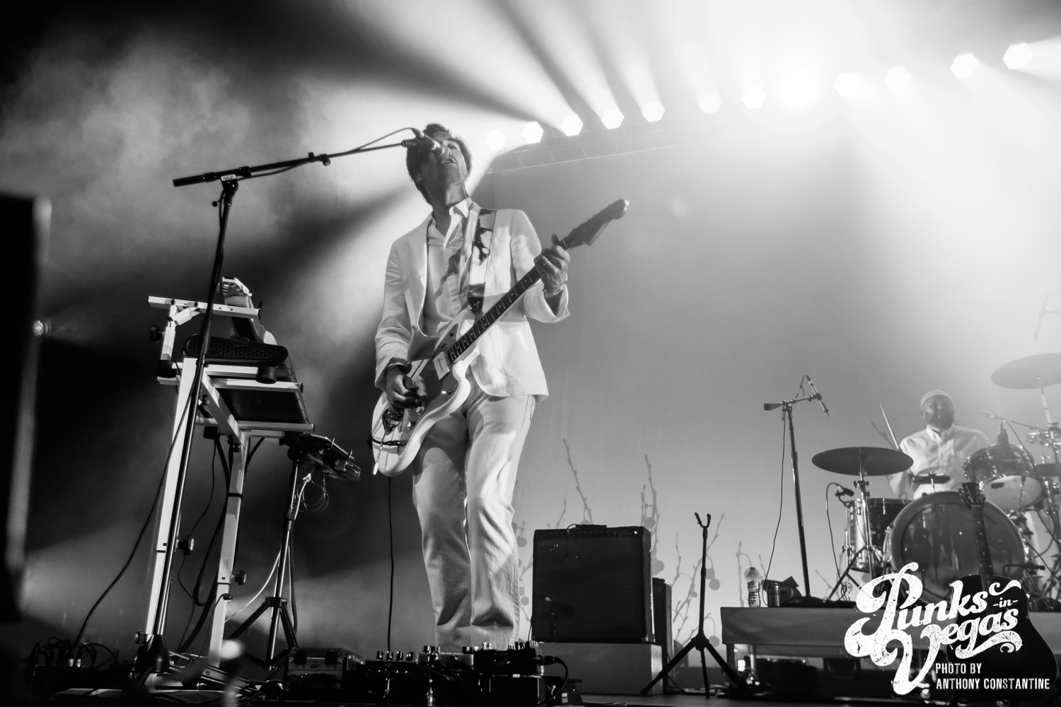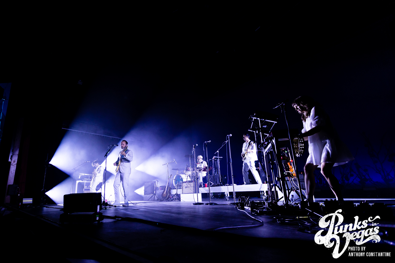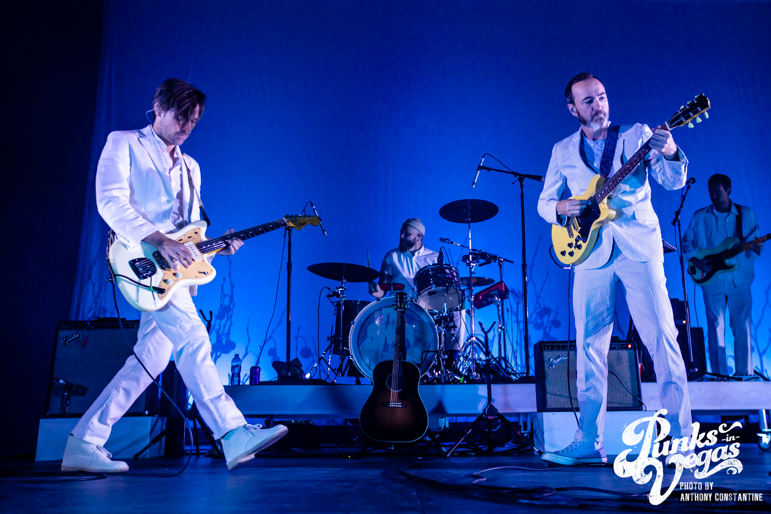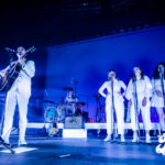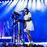 You could hear the buzz of conversation and laughter as the theater filled up with anticipation for The Shins’ to begin their set. People previously camped out at the bar came down to try and get a good view in front of the stage. As the sound check finished, the lights went down, and the crowd began cheering as the band members, silhouetted, emerged from backstage. When the stage lights came up, the band, all dressed in white, the cover of the album projected behind them, blasted right into the first track on the album, “Caring is Creepy.” Lead singer James Mercer’s vocals sounded even better than when the song debuted in 2001. The band tore through the album front-to-back, each nostalgic hit song one after another. On the third song of the set, “Weird Divide,” Mercer invited Joseph onto the stage to join in singing backup vocals. The trio’s harmonies lent beautifully to the slow, wandering melody of the song. Following the final song on the album “Past is Pending,” The Shins played several hits from other popular albums like “Simple Song” and “Kissing the Lipless,” which got huge reactions from the crowd. A new band member, Jon Sortland, was mesmerizing on the drums throughout the band’s set. Patti King on the keyboard and Mark Watrous on guitar also stood out, especially during the intro of “The Fear,” playing a hauntingly beautiful violin duet. When the night’s last song wrapped up, the crowd immediately cried out for an encore which The Shins did not disappoint, returning quickly to the stage with a few more songs, wrapping up the night of pure melodic nostalgia with Tom Petty’s “American Girl.”