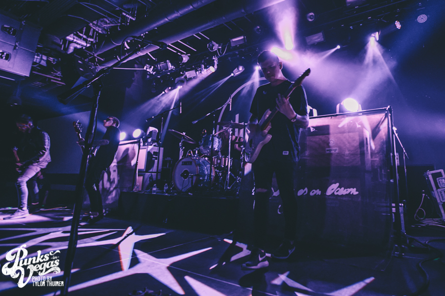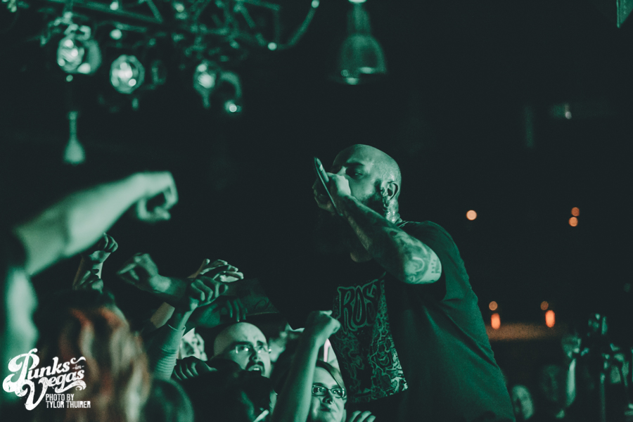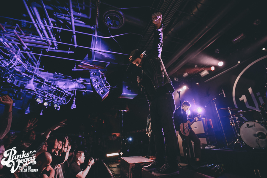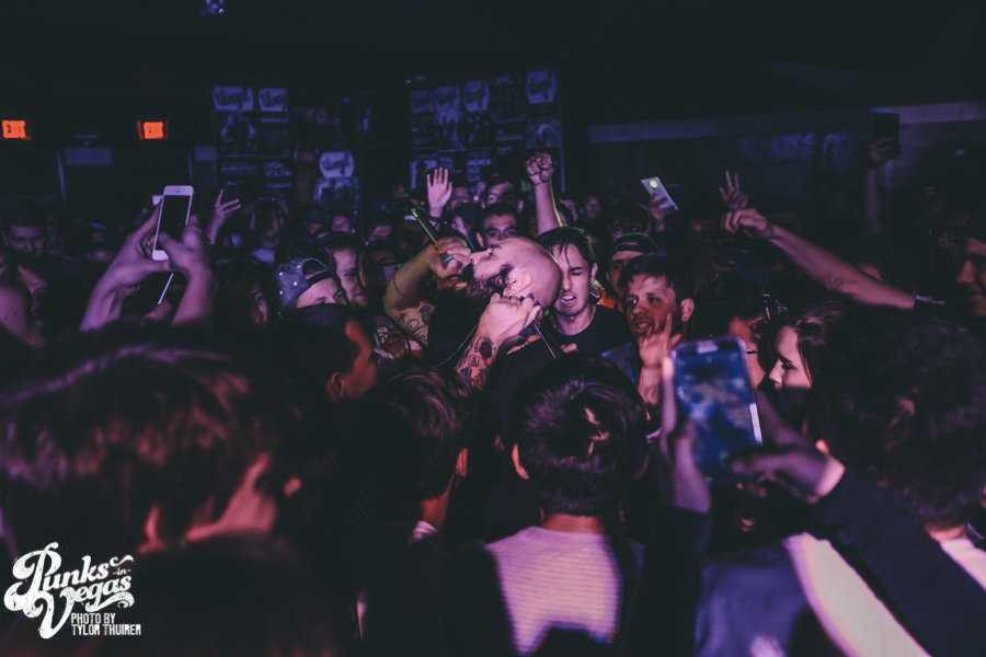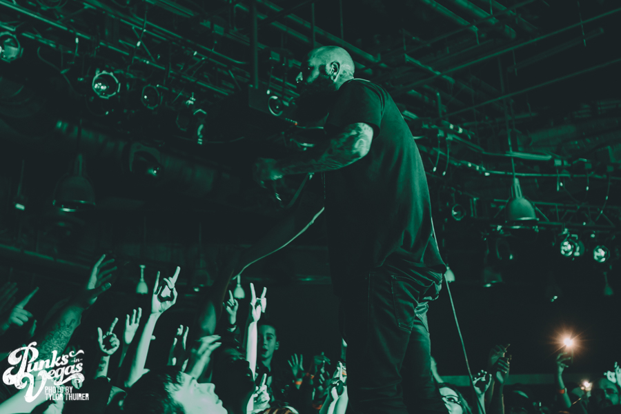 The crowd came alive the moment Silverstein took the stage and the first notes of “Stand Amid the Roar” came over the PA. With people standing shoulder to shoulder in the small, packed room, a strong number of them sang along with lead vocalist Shane Told. The great thing about this show and performance compared to their last show in Vegas at House of Blues, was you could tell it was so much more intimate for the both band and fans. Everyone was lost in the music as Silverstein ripped through material both new and old. A majority of the set was made up of hits and singles from their two most recent albums I Am Alive in Everything I Touch and This Is How the Wind Shifts. They made sure not to forget, though, about the old favorites such as “Smashed Into Pieces,” “Vices,” “Call it Karma” and of course “My Heroine” which were all right at the end of the set.
