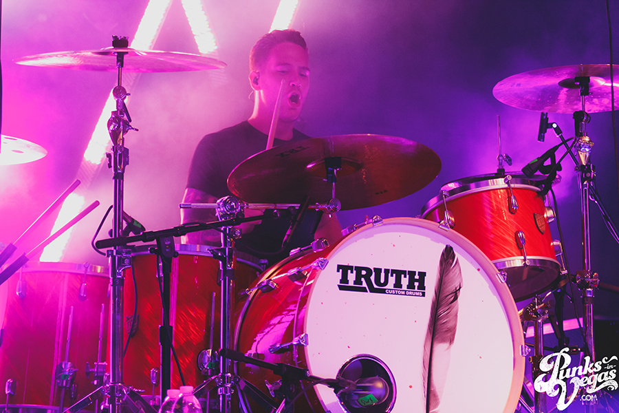 Orlando’s  Sleeping With Sirens was met with cheers and screaming as they took to the stage, opening with fan favorites “Here We Go,” “Congrats” (featuring MMF’s Matty Mullins), “Low” and “Free Now.”  Then they slowed things down a bit with a rasta-style version of “If I’m James Dean, You’re Audrey Hepburn.” It seemed that the entire crowd was singing at the top of their lungs throughout the entire set, the main part of which ended with hit “Satellites” from their latest release Feel. After the stage lights went dark, the Vegas crowd wasn’t ready to go home and chanted for an encore, which they got in the form of “If You Can’t Hang.”