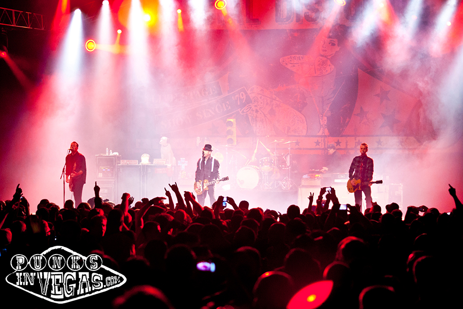 Frank Turner and The Sleeping Souls filled the middle slot and was the band I was most looking forward to seeing that night, which really says something on a lineup this strong. Turner stole the show at 2009’s more intimate Revival Tour and he did the same at the much, much larger Joint. A lot of that is due to the charisma he exudes. This was Turner’s first full-band show in Vegas and it was great hearing his folk-punk songs fleshed out in a live setting with lush, though simple piano, thumping bass, and raging harmonica. Besides his personal harmonica player, the frontman also invited one lucky woman from the crowd by the name of Nancy for a “private” harmonica lesson and solo during “I Still Believe.” His set featured a nice mix of older songs, such as “I Knew Prufrock Before He Got Famous” mixed in with a big chunk of his latest LP England Keep My Bones before ending with an extended version of “Photosynthesis.” Frank Turner got his start singing for hardcore punks Million Dead and has recently revealed that he is working on a new hardcore project, claiming to feel the itch for the faster style again. That itch seems to have bled over to his solo work, as the one new song we were treated to was definitely the fastest and most rocking of his discography and I can’t wait to hear more new songs from him.