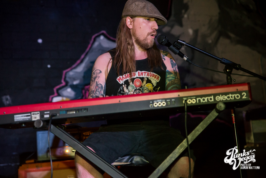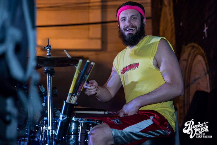 Locals War Called Home came out in matching school sweater vests but since the weather still remains close to triple digits hours after the sun goes down, they also sported matching khaki shorts (I know at least four grown ups who took advantage of those Mervin’s back-to-school deals). They played through skatepunk jams from their previously released EPs, shredding and jumping around the stage for “Hoodie” and “Empty as the Canal,” the latter of which was dedicated to PIV photog and recent world traveler/possible international assassin Aaron Mattern.