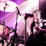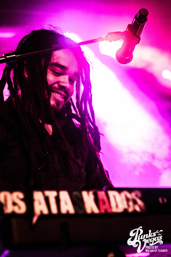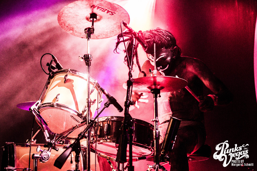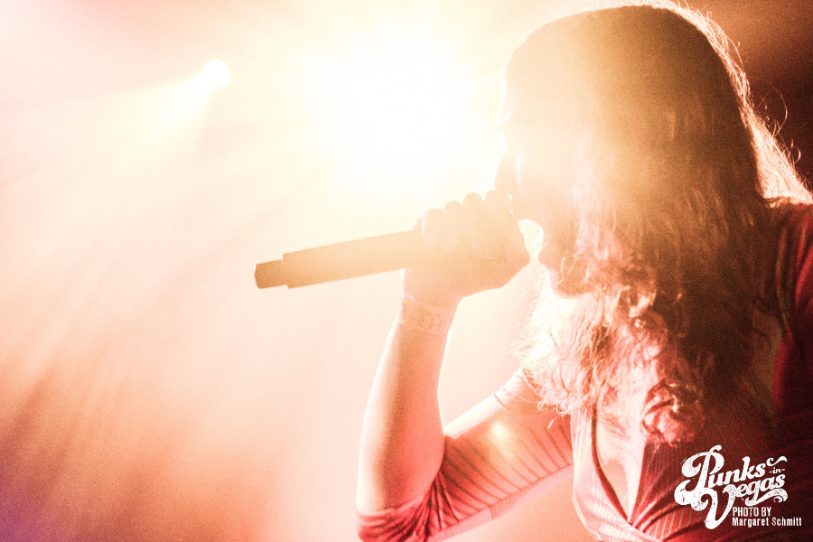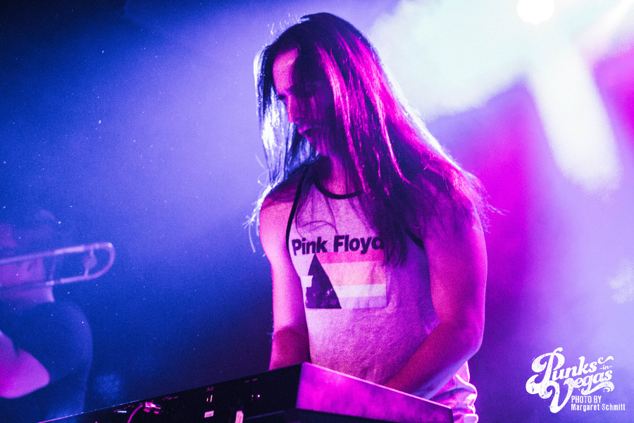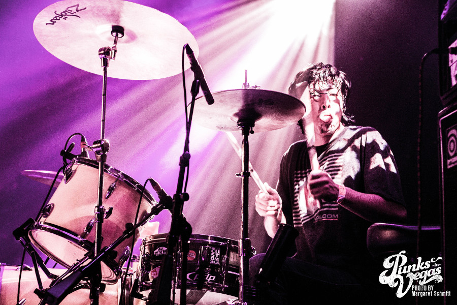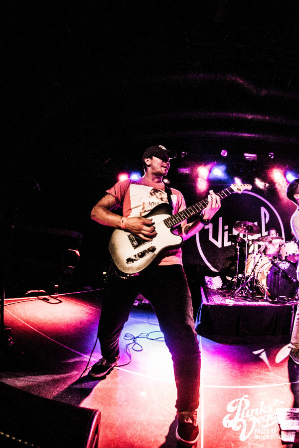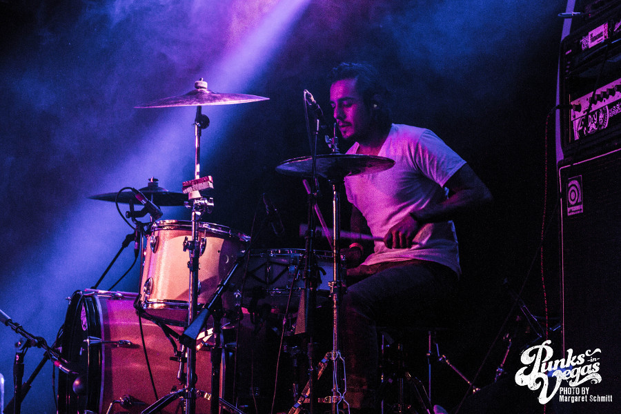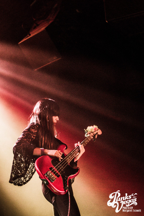 This would be my first time seeing most of the bands on the lineup, and the moment The Social Set stepped onto the stage I knew the feminine presence would be strong throughout the night. Not only because the rhythm and soul of the band (drummer, Jennifer Gonzalez) was a kick ass female, but because vocalist Justin Williams and bassist Isaiah Richardson rocked out in some very pretty flowery dresses. Their set was mostly instrumental with a bit of rebellious lyrics here and there, and I was quite taken at the bleeding enthusiasm throughout their set. I always imagine how hard it is to open a show when the venue is mostly empty and people aren’t nearly drunk enough to dance. The essence of true love for the music was inspirational, and overall – the set was a solid opening, even with a newly integrated guitarist.