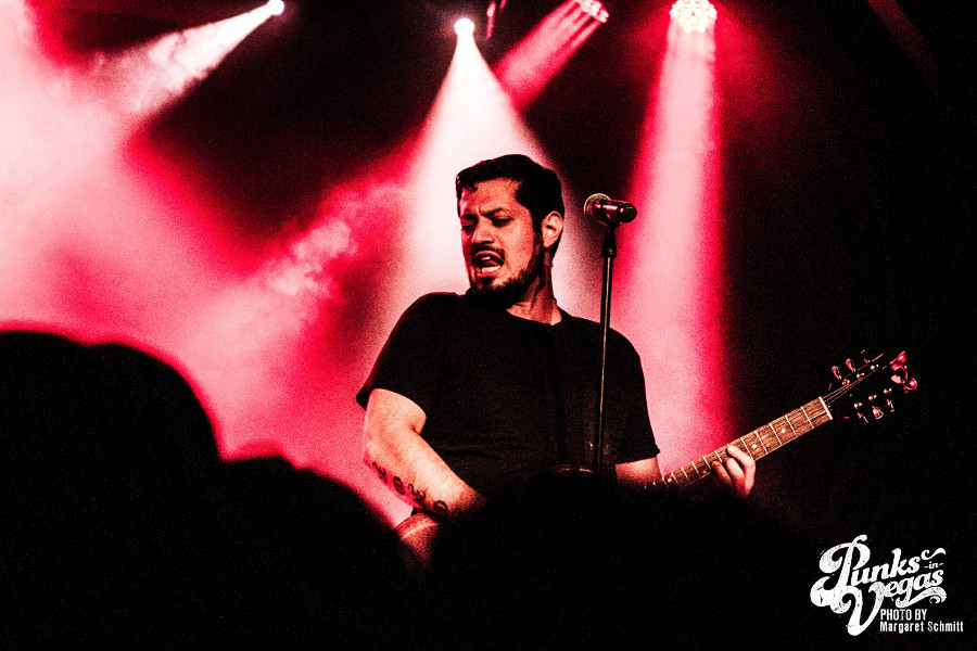 Anti-Vision was up next, and were far more to my taste, meaning they were loud, angry, and fast. They really got the crowd going, and the sight of the pit was truly the most beautiful thing I had witnessed all night. They mostly play originals but did cover a CG’s song to show vocalist Brendan Sellers’ undying love for the band. Nothing says “I’m a super fan” like a tattoo and a CG’s forever chant. Sellers’ energy really took me away, and he even ended up on the rails serenading the crowd. Their set was really the tipping point of the night, and I finally felt at harmony with my fellow brethren in studded jean jackets.