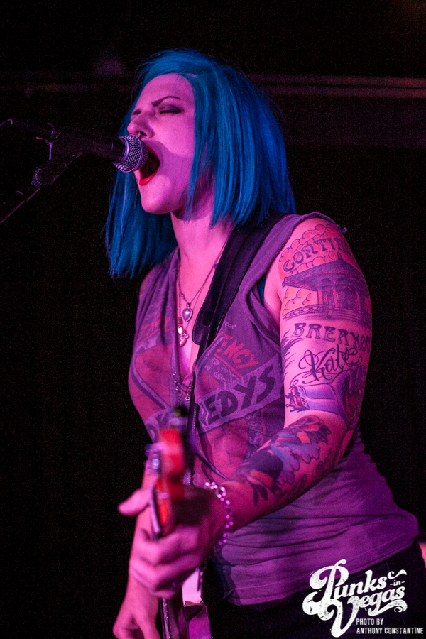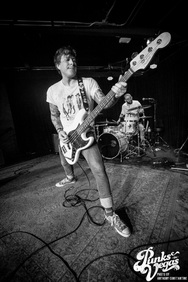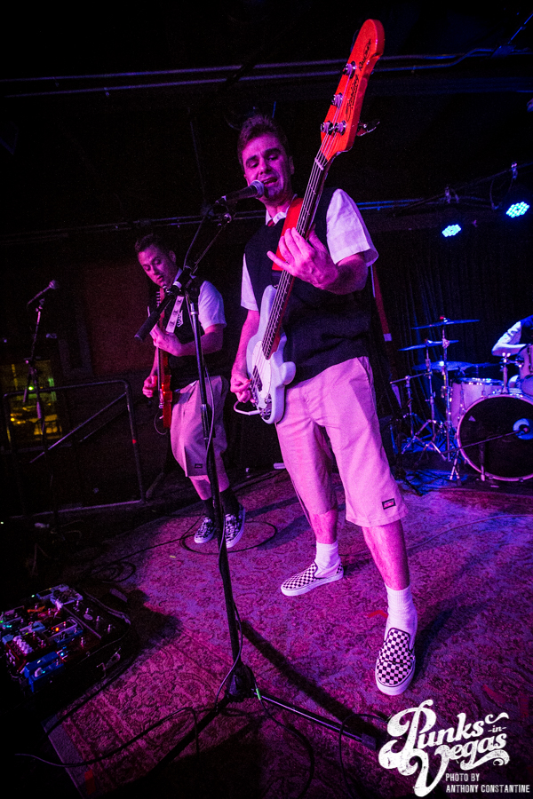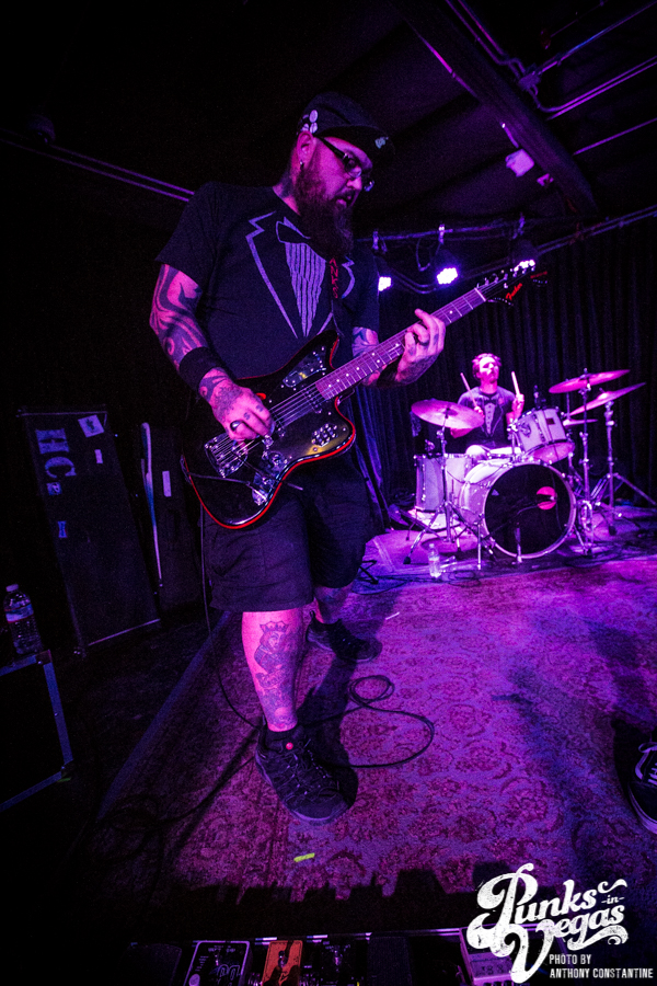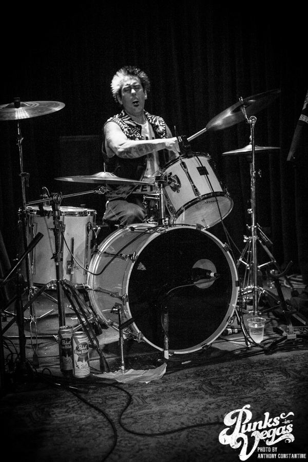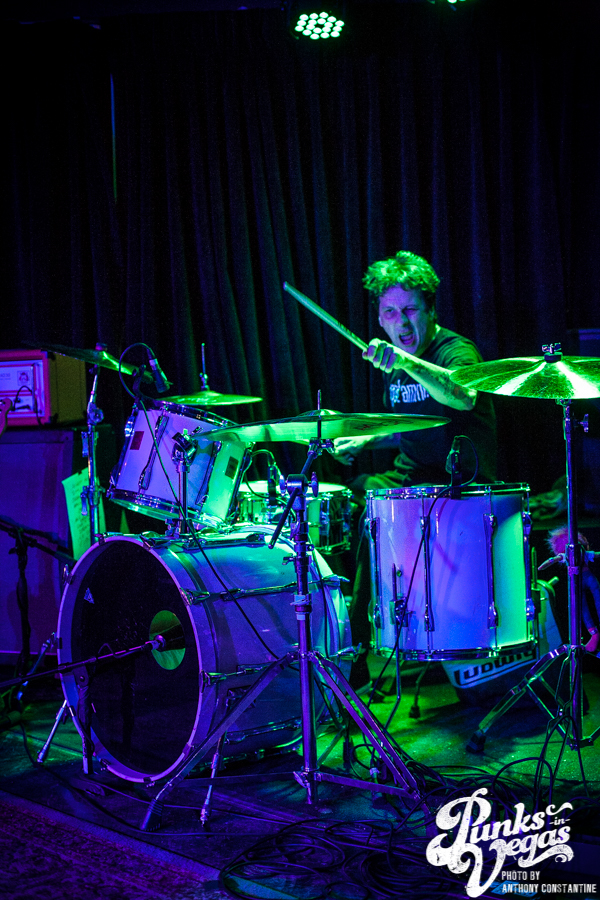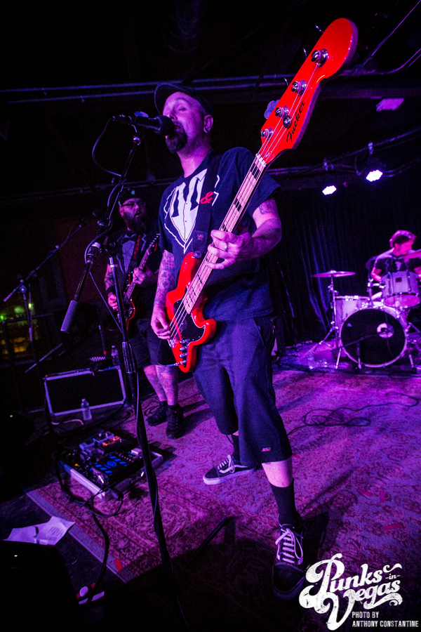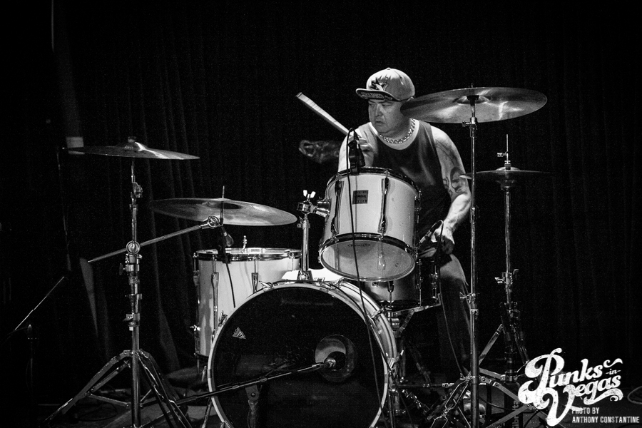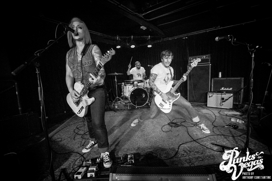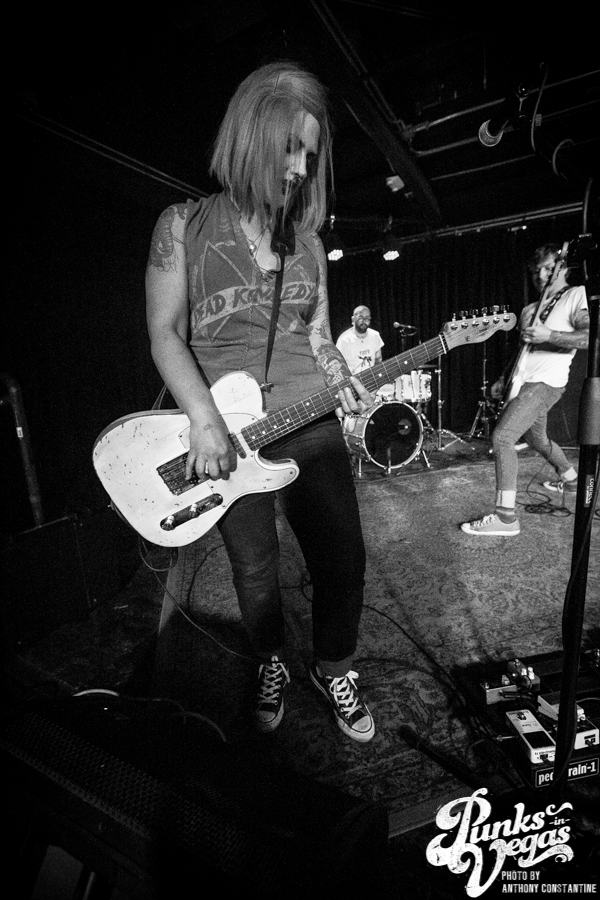 Punks in Vegas photographer, Anthony Constantine, described Orange County’s The Last Gang as “The Distillers, but better,” a bold statement I wholeheartedly support. This three piece composed of vocalist/guitarist Breena Red, bassist Sean Viele, and drummer Robby Waterland were my favorite band of the night, not that anyone’s picking favorite. Besides the catchy punk rock tunes they belted out, I knew I was in for a treat when I noticed their drummer with an O.G. Rancid t-shirt. Anyone who takes that much care of such a classic t-shirt sure has a high regard for punk rock. The Distiller vibe is there, but their music offers so much more, and is accompanied by a stellar live show.