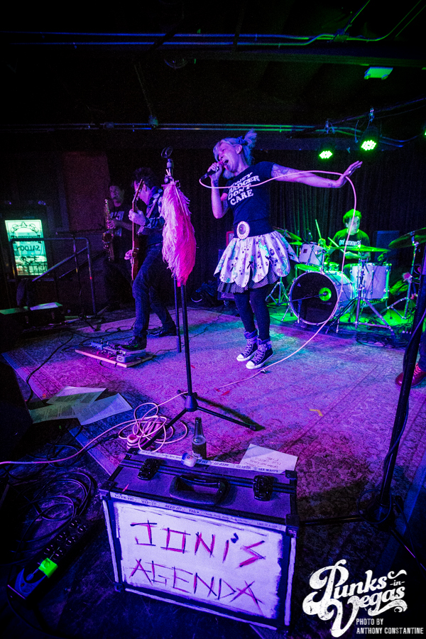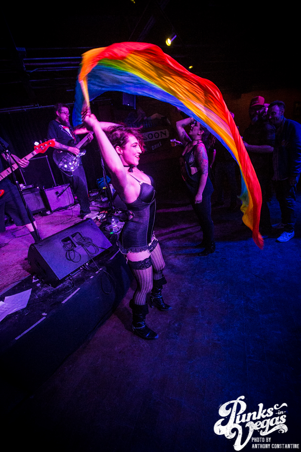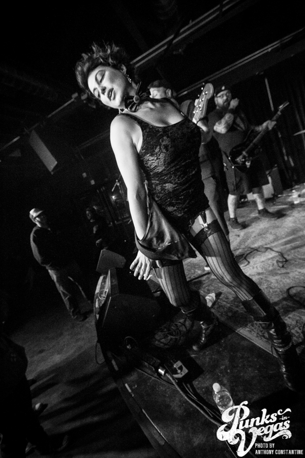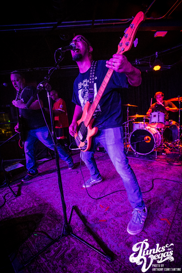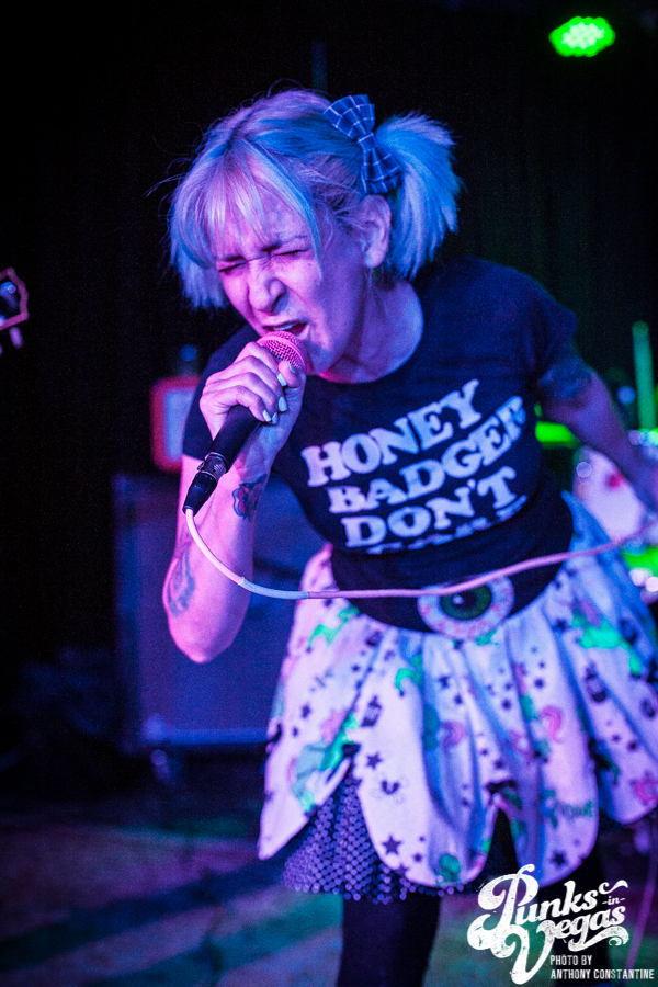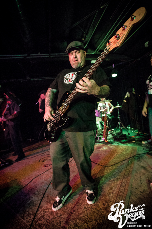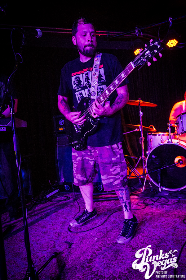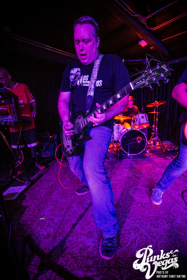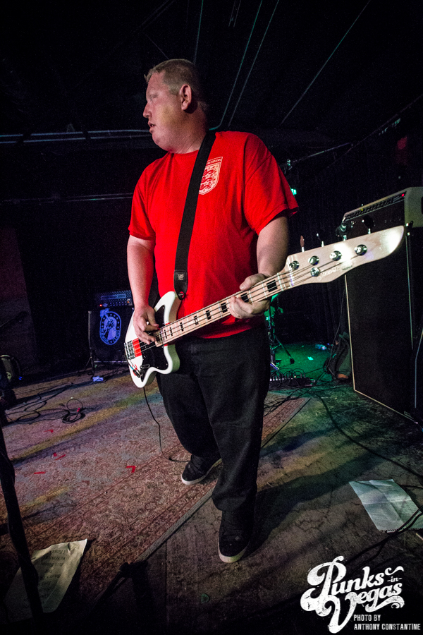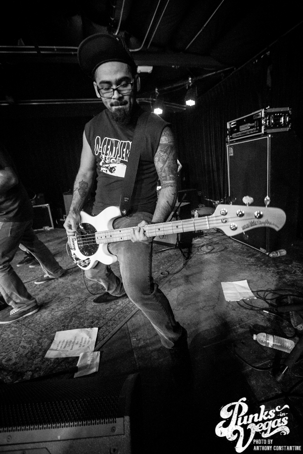 Punks in Vegas photographer, Anthony Constantine, described Orange County’s The Last Gang as “The Distillers, but better,” a bold statement I wholeheartedly support. This three piece composed of vocalist/guitarist Breena Red, bassist Sean Viele, and drummer Robby Waterland were my favorite band of the night, not that anyone’s picking favorite. Besides the catchy punk rock tunes they belted out, I knew I was in for a treat when I noticed their drummer with an O.G. Rancid t-shirt. Anyone who takes that much care of such a classic t-shirt sure has a high regard for punk rock. The Distiller vibe is there, but their music offers so much more, and is accompanied by a stellar live show.