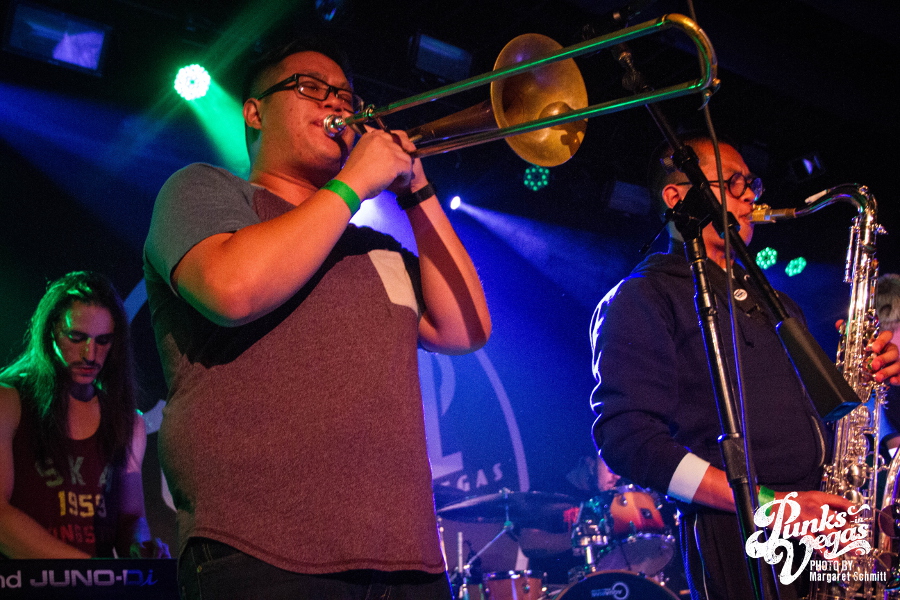 One thing I love about Vinyl, (the venue located inside the Hard Rock Hotel on Paradise that isn’t called “The Joint”) is how close you can get to the bands. It just feels so much better when you can get right up to the stage and see your favorite bands play, especially if one of those bands is ska/punk legends The Slackers. Plus, the stage is pretty wide so you have a good view no matter where you stand.