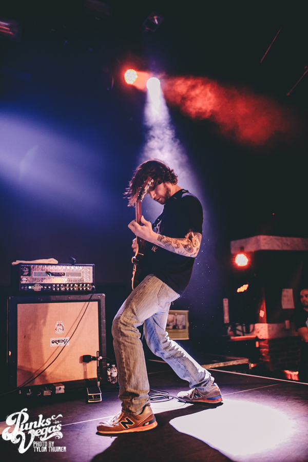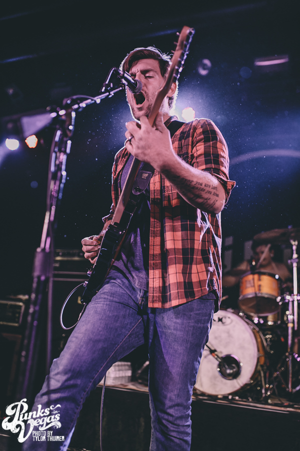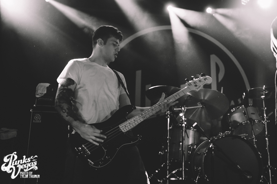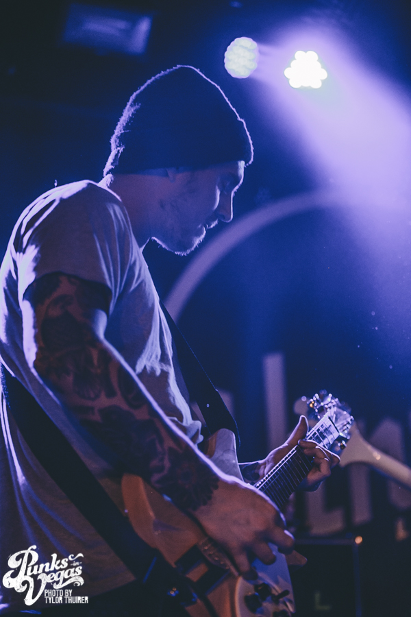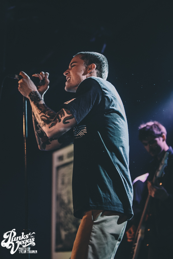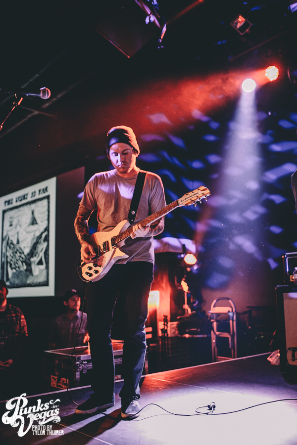 Last Call fit the bill perfectly. The local pop punk outfit powered their way through their small 5 song set with positivity and a great reaction from a crowd who very likely had never heard of them before, despite being from Las Vegas. The thing that stood out most during the set was not just their music but the passion they had for The Center which is a local community center for gay and lesbian youth. The band had special benefit t-shirts made with profits and all record sales from the night going to the organization. The guys were also very humble about being chosen to open the show and took the time to give a shout out to other great locals and encouraged the crowd to check out bands such as Guts, Characters, and Alaska. After playing a brand new song “Impotent or Evil” and pushing through a few technical difficulties, the guys ended their set on “Small Town Blues.”