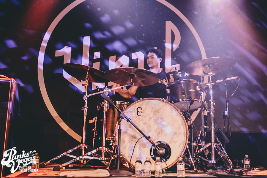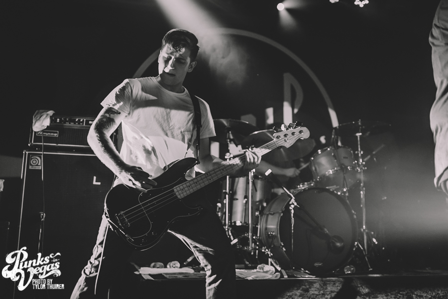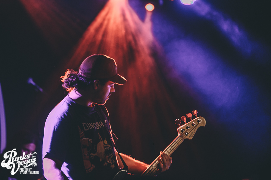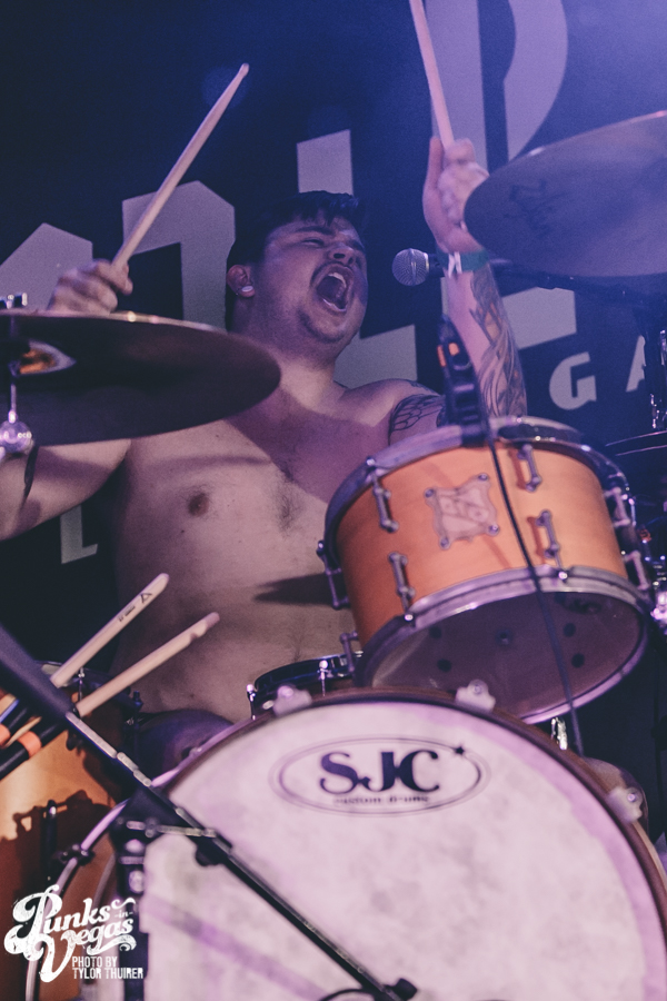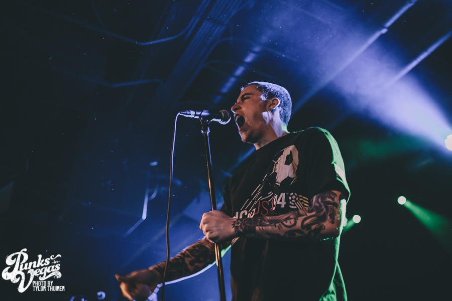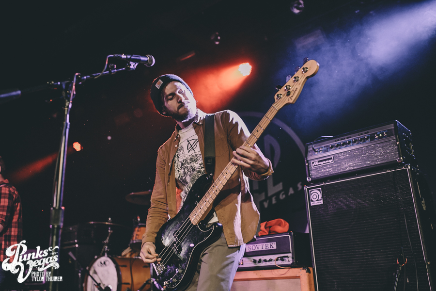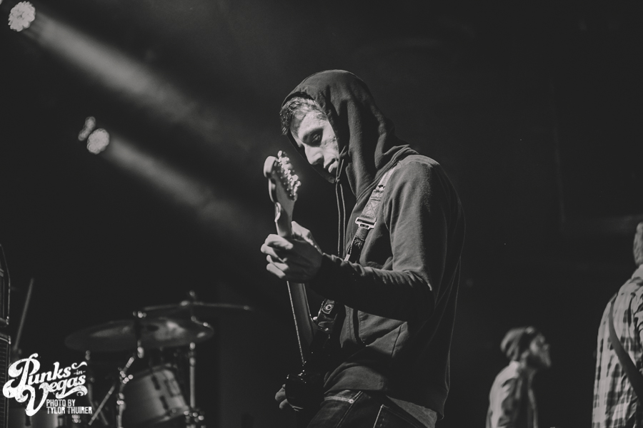 Last Call fit the bill perfectly. The local pop punk outfit powered their way through their small 5 song set with positivity and a great reaction from a crowd who very likely had never heard of them before, despite being from Las Vegas. The thing that stood out most during the set was not just their music but the passion they had for The Center which is a local community center for gay and lesbian youth. The band had special benefit t-shirts made with profits and all record sales from the night going to the organization. The guys were also very humble about being chosen to open the show and took the time to give a shout out to other great locals and encouraged the crowd to check out bands such as Guts, Characters, and Alaska. After playing a brand new song “Impotent or Evil” and pushing through a few technical difficulties, the guys ended their set on “Small Town Blues.”