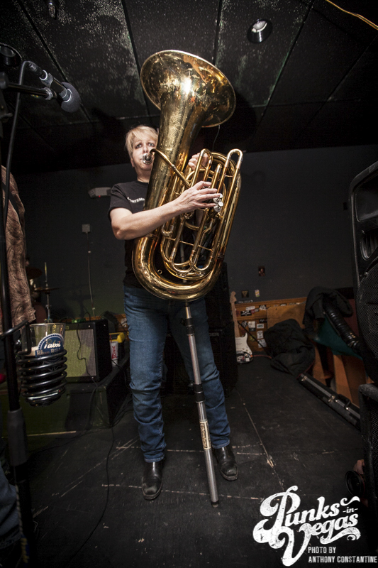 Introduced by the host of the night’s festivities, local comic creator and Moonboots bass player, Pj Perez, it was finally time for the reunion we had all been waiting for, Tippy Elvis. They started off their set with a jam song lyrically comprised only of haikus about smoking pot. You could tell parts of the crowd were there for Tippy Elvis and the other portion had no idea who they were, but the band was totally loving it. Their set was filled with crazy stage antics, questions about if the crowd had ever wanted to do horrible things to clowns and jokes about them being old. They ended with their song “Punk Rock Tuba” and the crowd went wild. Everyone who knew it was singing along and those who didn’t know it caught on very quickly. As everyone flooded out of the bar with smiles on their faces, it was clear we all had a collective blast.