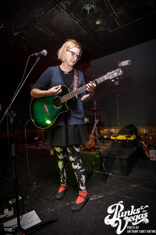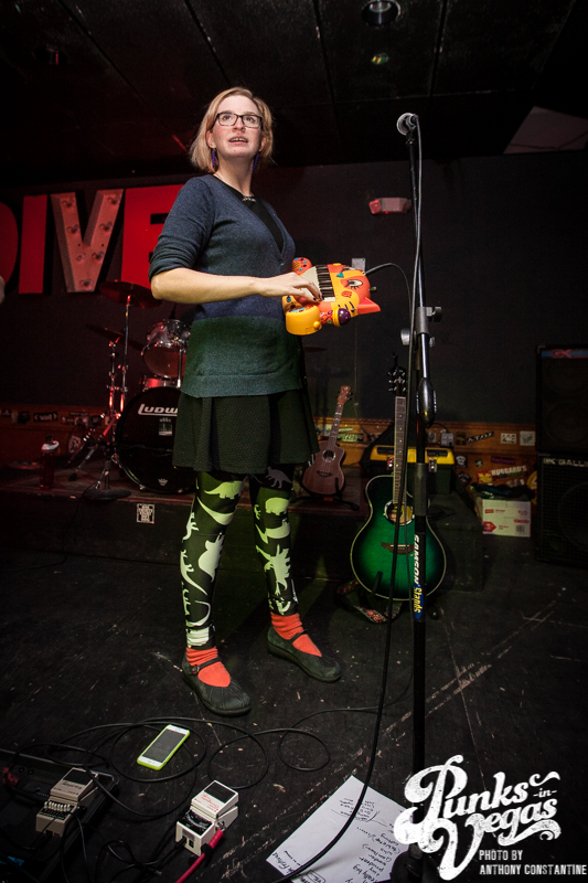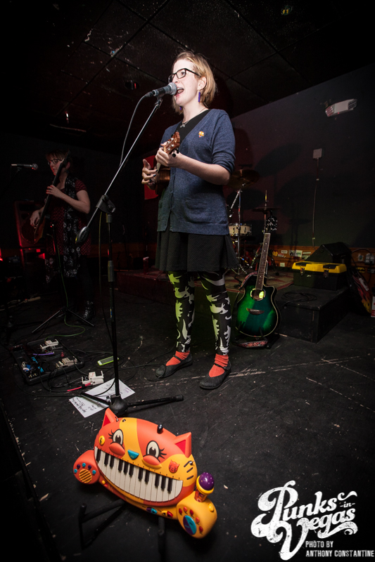 First up was The Doubleclicks from Portland, Oregon. Sisters Angela and Aubrey were armed with a slew of instruments and nerdy songs that made us laugh and really question whether social anxiety was a bad thing. In fact, their first song was about having social anxiety and instead of going out with friends, partying with cats at home because they are not sexist or judgmental. Later on in the set, Angela busted out the cat keyboard. Basically, a little kids’ keyboard shaped like a cat that only dealt in meows. After testing out a few different meows, she proceeded to play the ‘Doctor Who’ theme song in meows, telling the crowd, “ This is the only thing we brought this out here for, we brought it all the way from Portland for that.” Towards the end of their set, they played a song all about a guy who requested they play “Free Bird” at a show. When the song was over, Angela told the crowd to go check out their website where they have a YouTube video of them covering “Free Bird,” which went horribly.