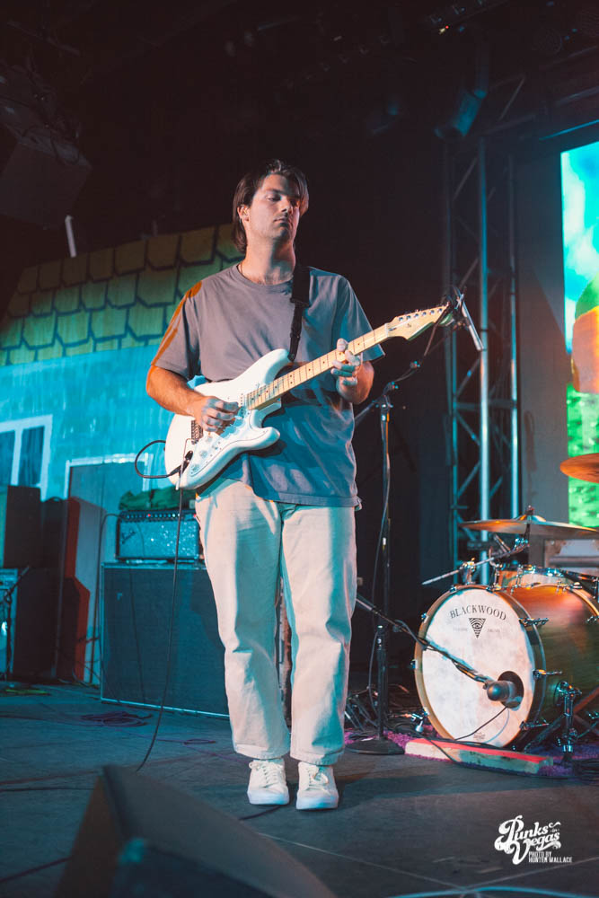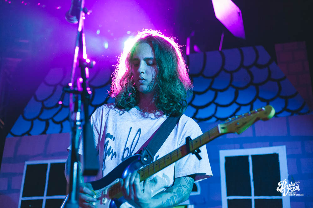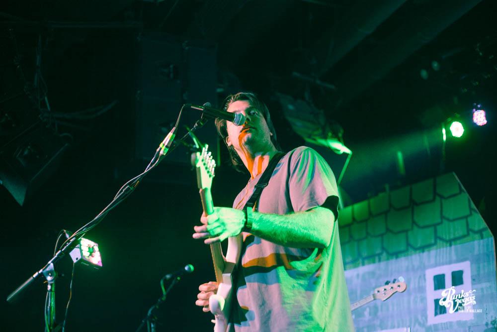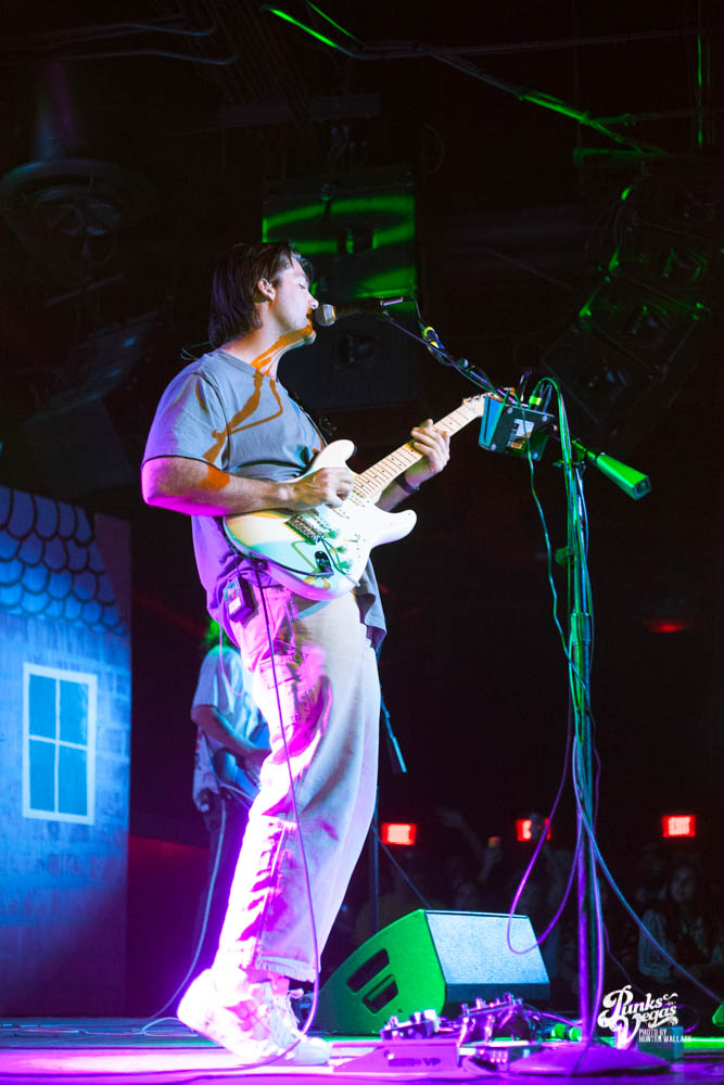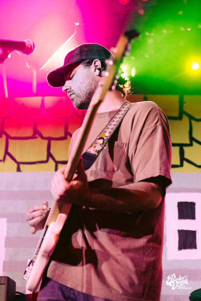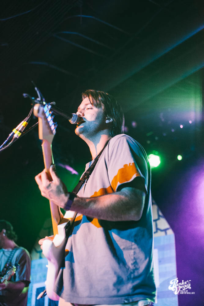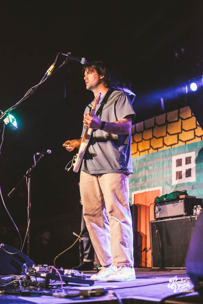 The two openers were wonderful primers for Turnover, whose production was much more conceptual than the band’s previous Vegas visits. This time, the quartet placed us in a clay-constructed, psychedelic version of suburbia – complete with moving cars, mythical creatures, a burning sun, and dancing domestic partners. They executed this using two towering wood paintings near the side of the stage, and a giant projection that broadcasted the twisted neighborhood. It was an odd, yet fitting pairing—the screen’s vibrant colors were a nice supplement to Turnover’s easy-going indie rock. The quartet’s one-two punch opener of fan favorites was received warmly, and Getz smiled as fans swayed and sang along. It was a sentiment that was echoed throughout the set.