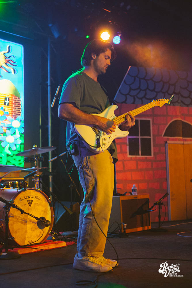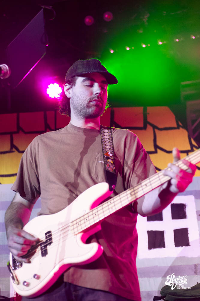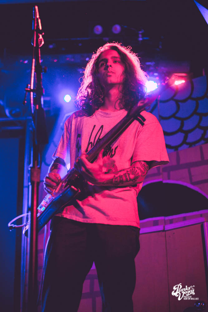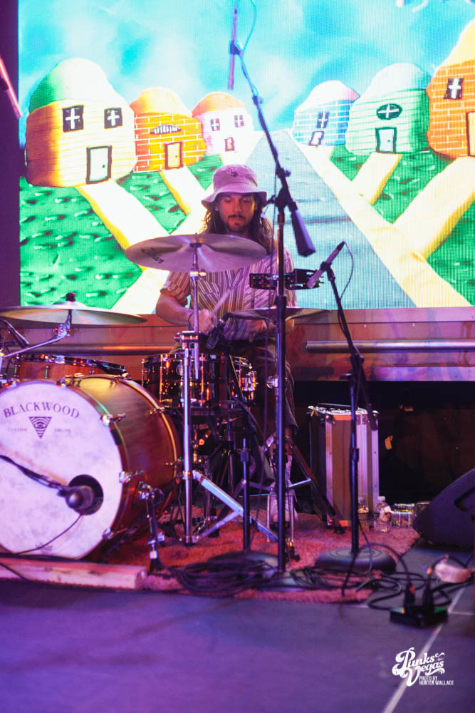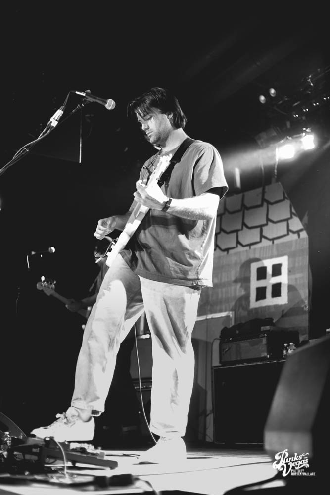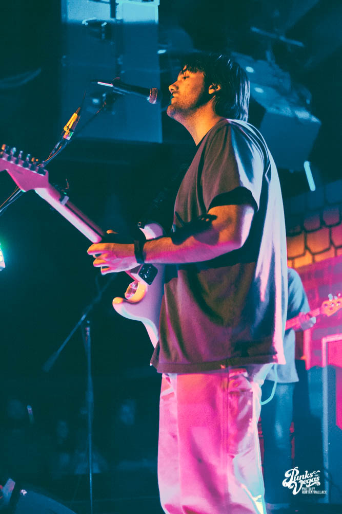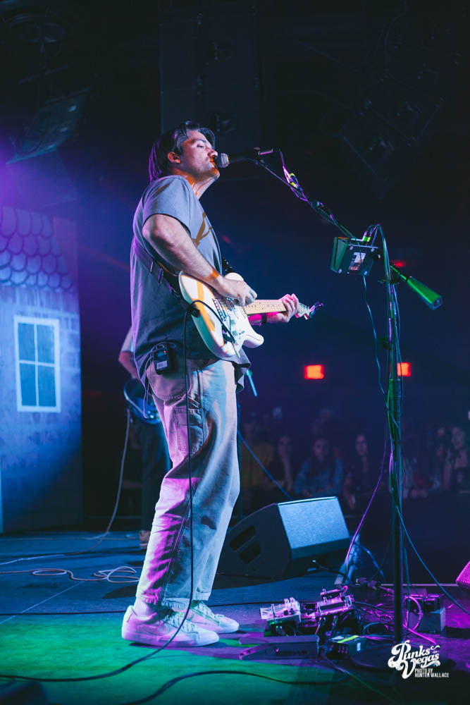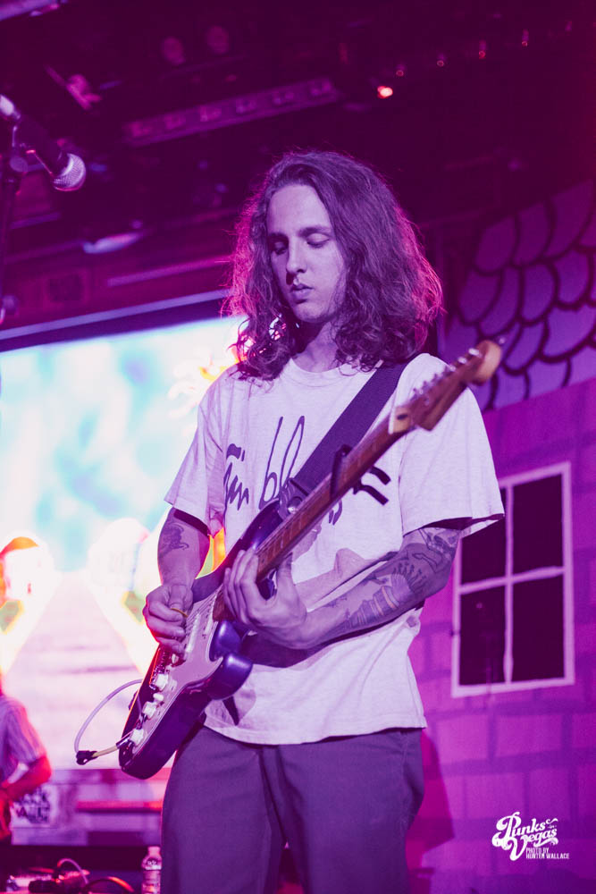 The two openers were wonderful primers for Turnover, whose production was much more conceptual than the band’s previous Vegas visits. This time, the quartet placed us in a clay-constructed, psychedelic version of suburbia – complete with moving cars, mythical creatures, a burning sun, and dancing domestic partners. They executed this using two towering wood paintings near the side of the stage, and a giant projection that broadcasted the twisted neighborhood. It was an odd, yet fitting pairing—the screen’s vibrant colors were a nice supplement to Turnover’s easy-going indie rock. The quartet’s one-two punch opener of fan favorites was received warmly, and Getz smiled as fans swayed and sang along. It was a sentiment that was echoed throughout the set.
