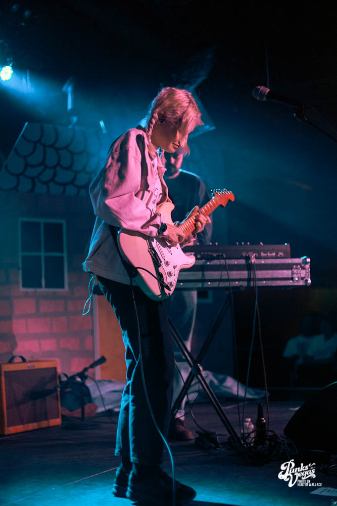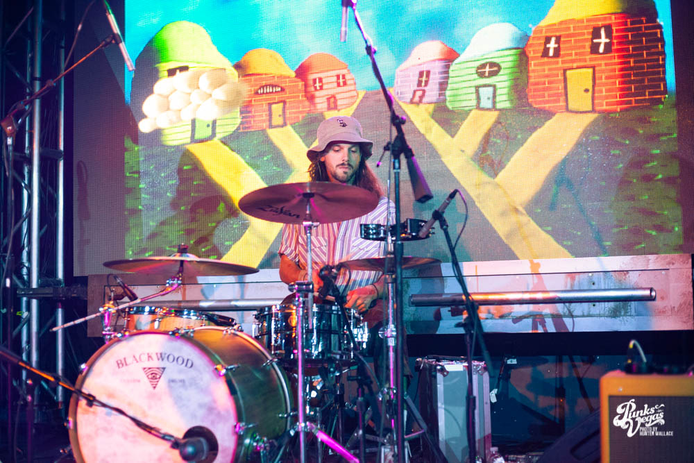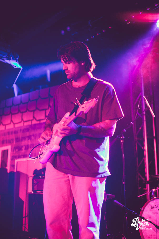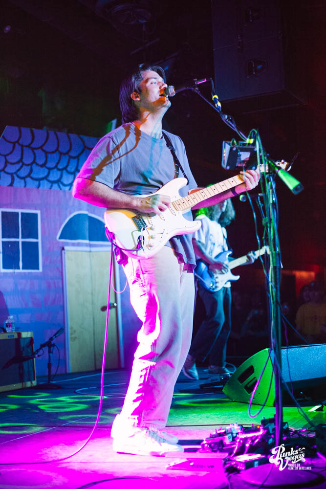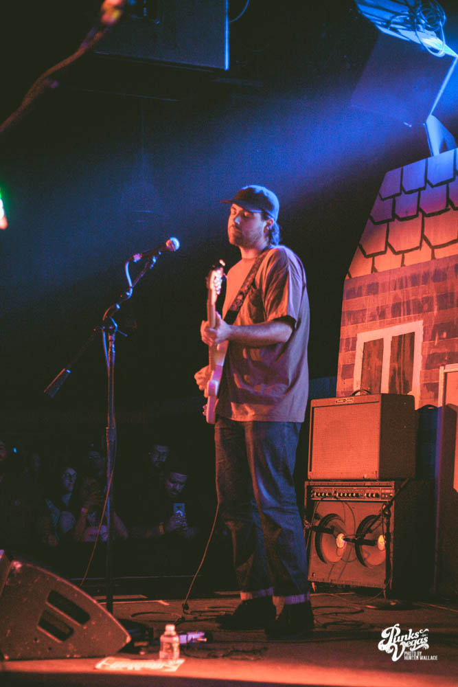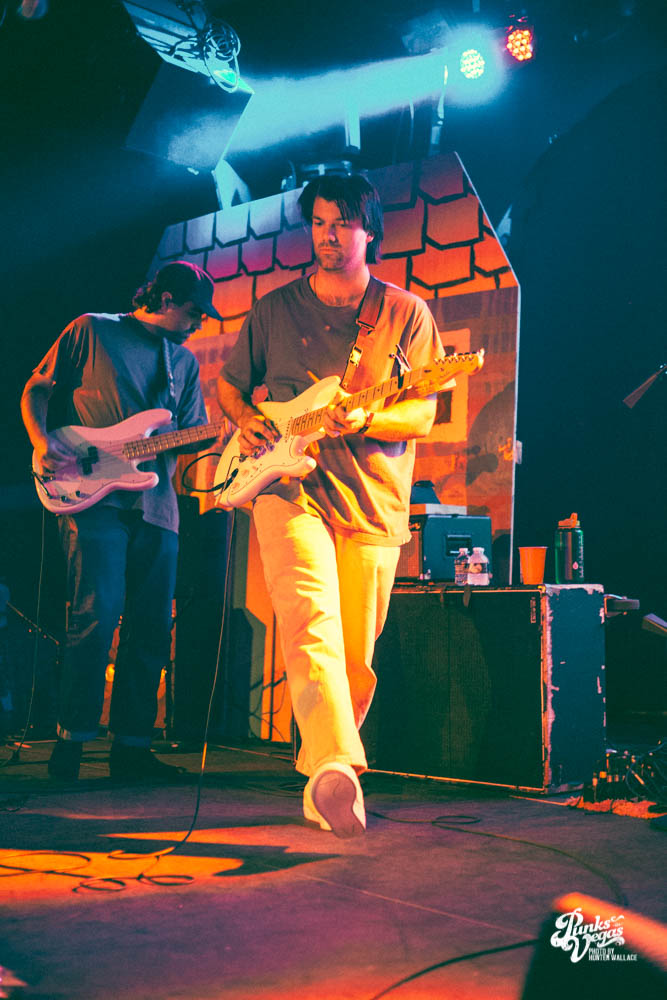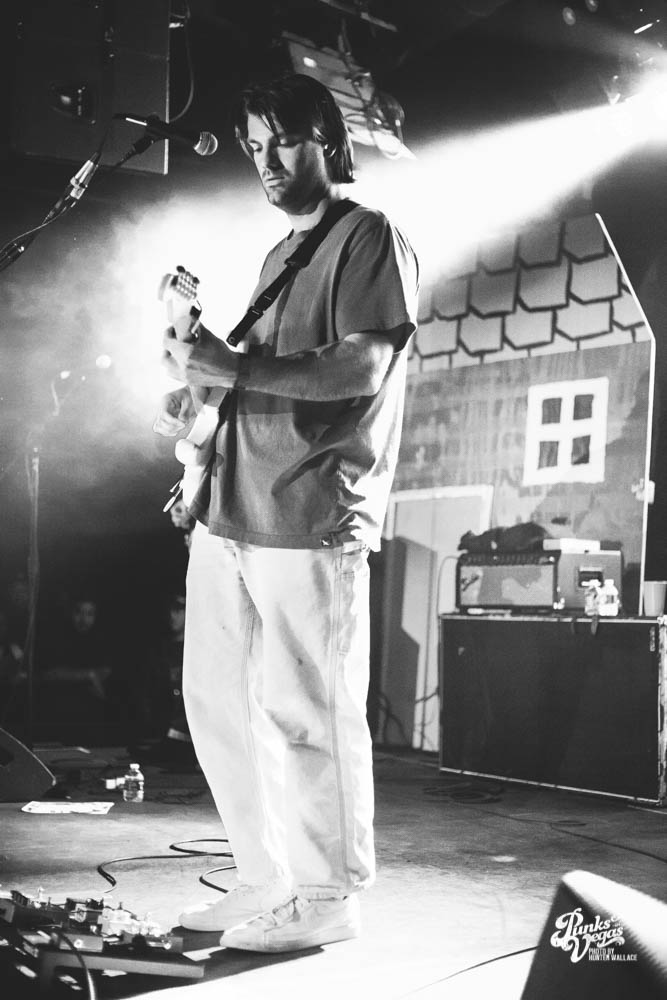 The two openers were wonderful primers for Turnover, whose production was much more conceptual than the band’s previous Vegas visits. This time, the quartet placed us in a clay-constructed, psychedelic version of suburbia – complete with moving cars, mythical creatures, a burning sun, and dancing domestic partners. They executed this using two towering wood paintings near the side of the stage, and a giant projection that broadcasted the twisted neighborhood. It was an odd, yet fitting pairing—the screen’s vibrant colors were a nice supplement to Turnover’s easy-going indie rock. The quartet’s one-two punch opener of fan favorites was received warmly, and Getz smiled as fans swayed and sang along. It was a sentiment that was echoed throughout the set.