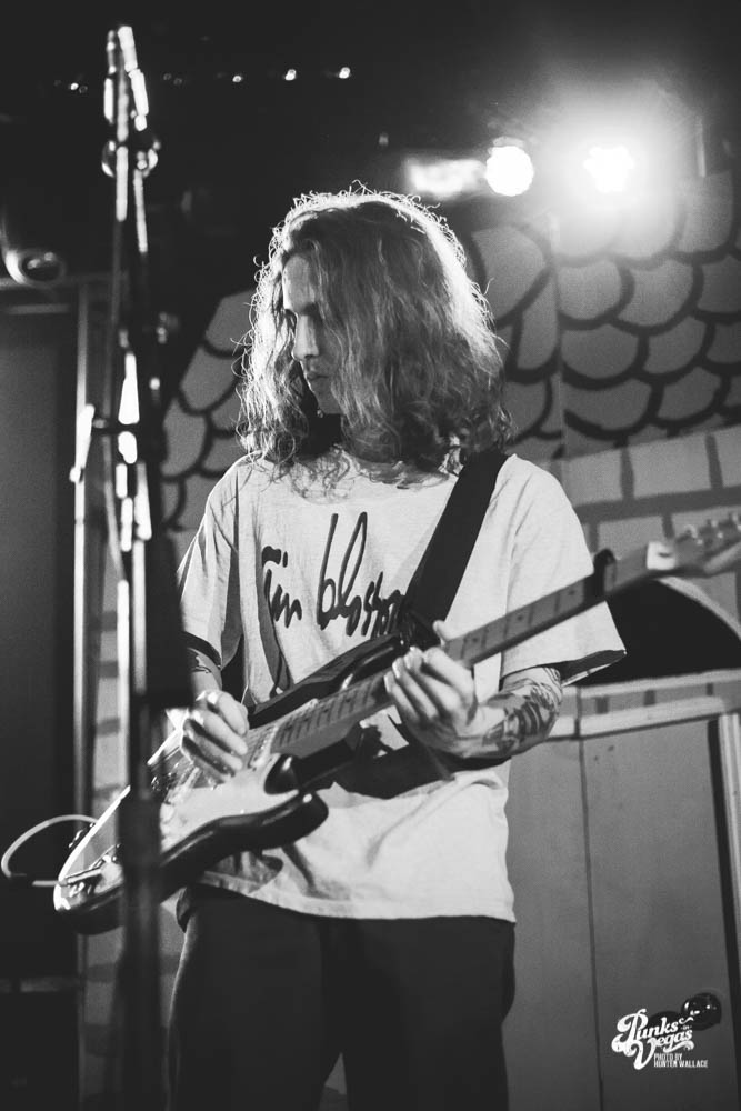 “Here,” in this case, was Vinyl inside of Hard Rock. It was a subtle moment of reflection for Getz, as he twiddled with his guitar tuners and took a glance at the audience. Turnover drew a sizable crowd to a venue on the middle of the Strip on hump day. That realization alone is proof that the Virginia Beach, Florida quartet has effectively ascended the Las Vegas venue ladder. And they’ve done it elsewhere too; this stop was in the middle of the band’s U.S. tour, in between Coachella appearances. It’s a far cry from the graffiti-covered walls and dusty halfpipe at the aforementioned East Side Joes.