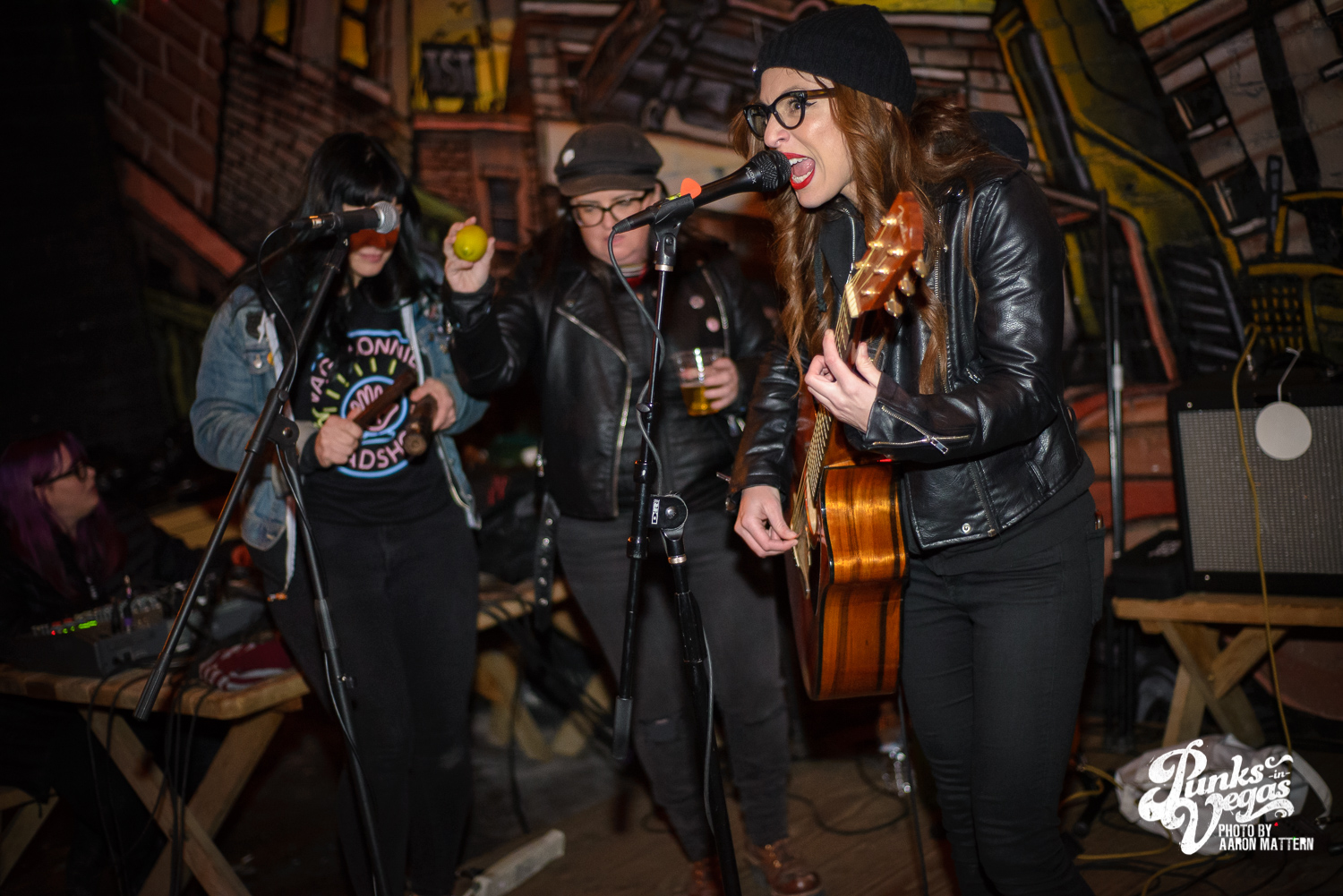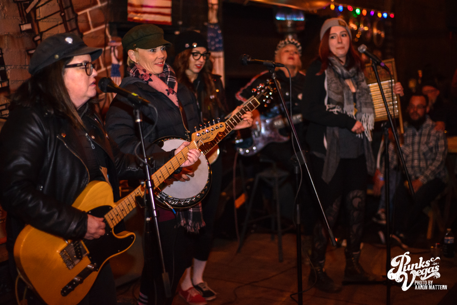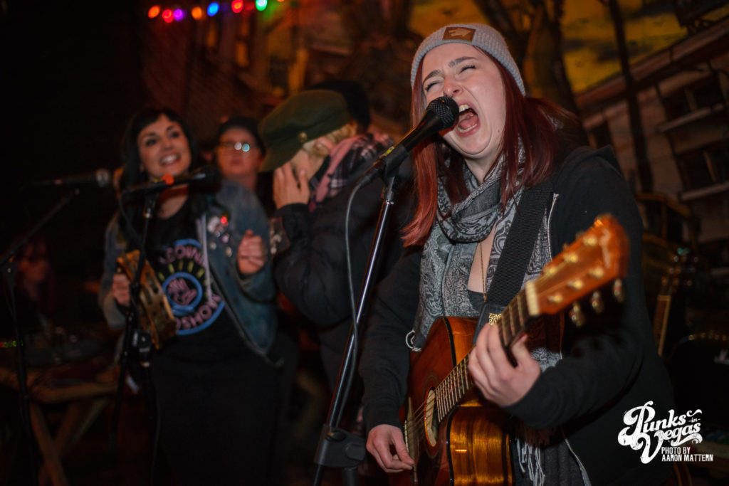 The Vagabonnies Roadshow invaded Evel Pie last week. The event was sort of like a “Revival Tour Revival,” meaning we had a mix of punk rock musicians – Stacey Dee & Jennie Cotterill (Bad Cop/Bad Cop), Jen Razavi (The Bombpops), Beebs and Her Money Makers, Jen Carlson (Angry Amputees) and Gillian McGhee (Hi Ho) – trading in their distortion pedals for acoustic guitars and banjos.