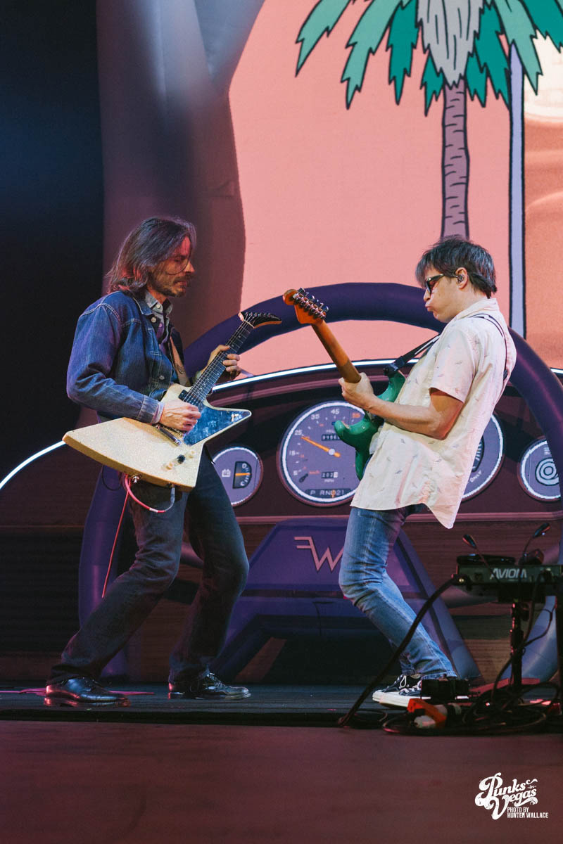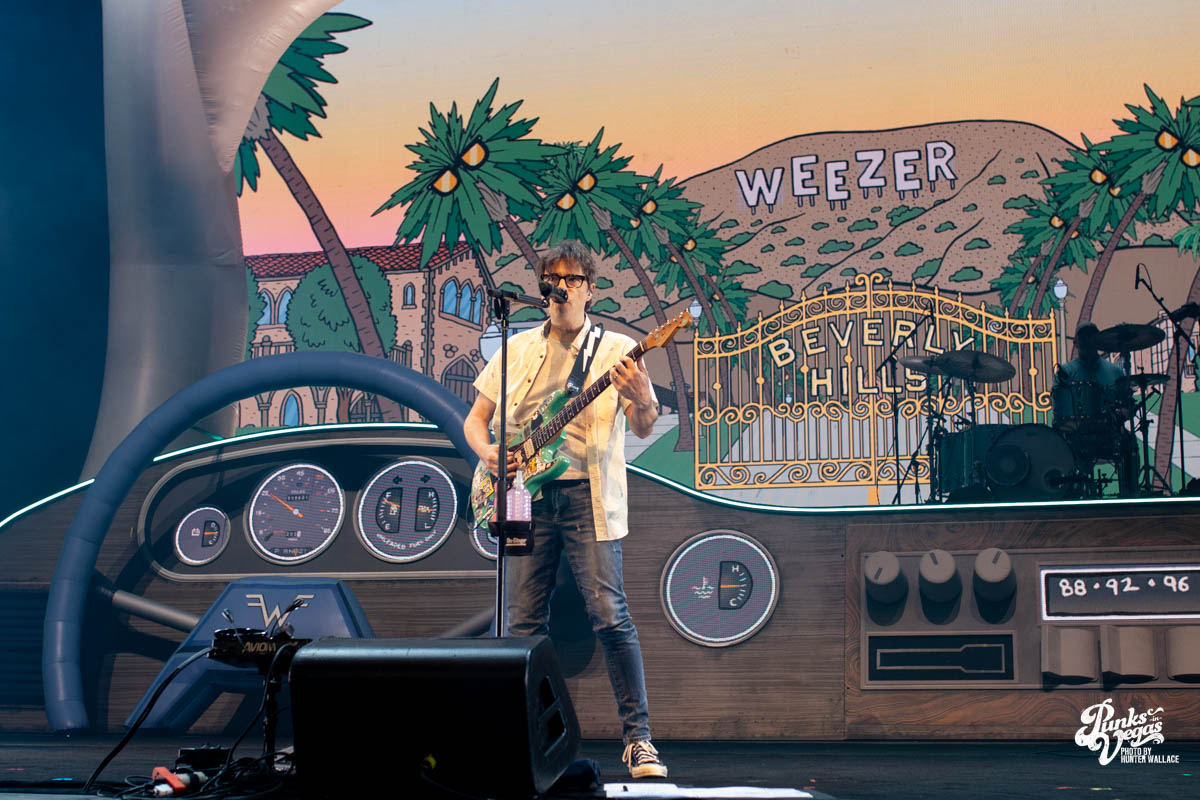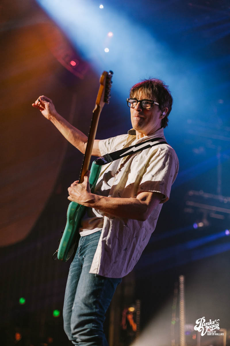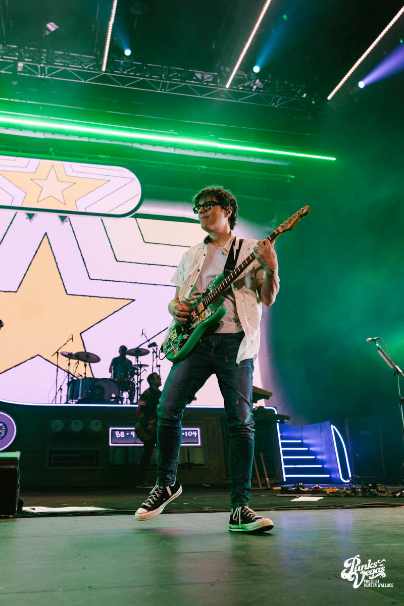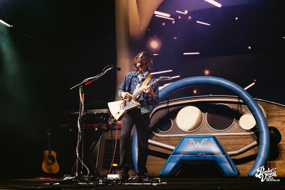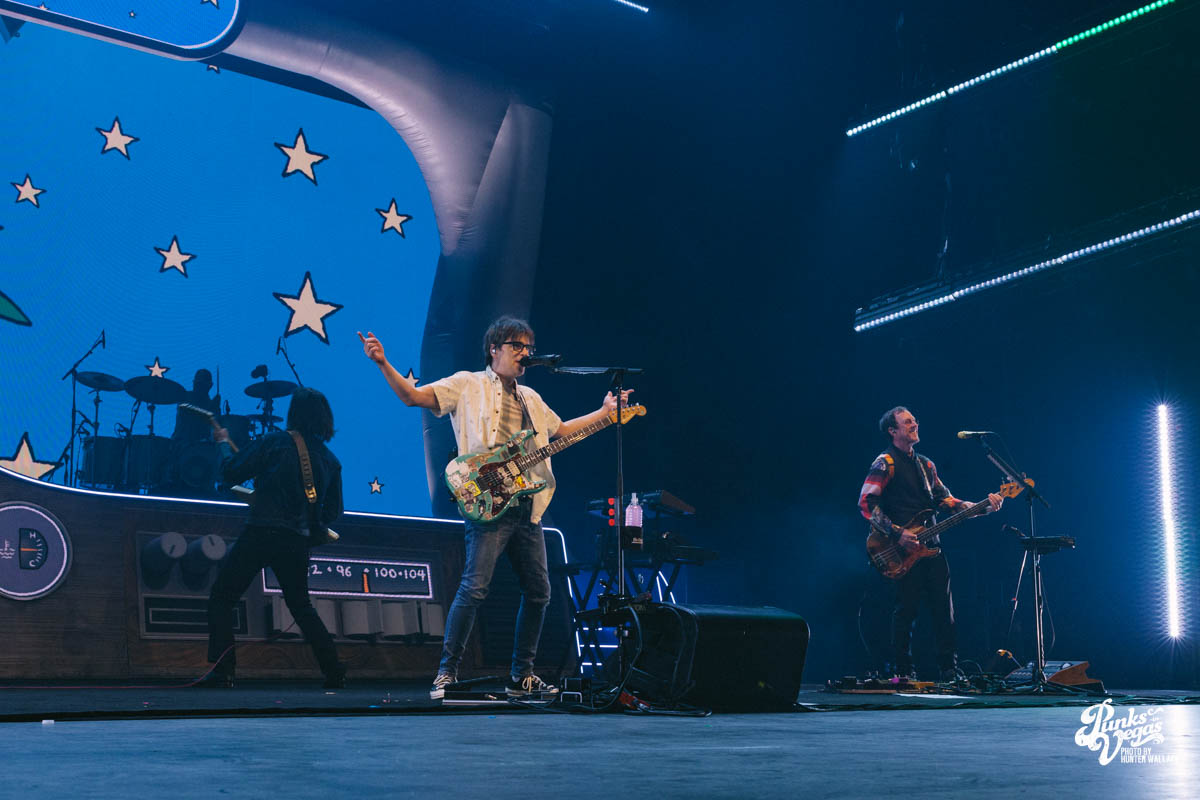 Rivers Cuomo, donning his trademark thick-rimmed glasses, immediately captured the audience’s attention as he went into Beverly Hills subbed with “Las Vegas, Nevada” a few times.