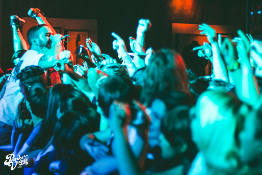 This was The Wonder Years’ first headlining gig in Las Vegas since they were supporting sophomore release The Upsides in 2011, and the crowd greeted them with thunderous applause immediately upon their entrance to the stage. The band wasted no time, launching into a 15 song setlist that spanned their entire career, with the lesser known tracks given just as much care as the more popular songs. Things kicked off with a great one two punch – “Dismantling Summer” right into “Don’t Let Me Cave In.” The energy was through the roof and wave after wave of crowd surfers were spotted getting a second or two of mic time with Soupy, all trying to land on the small stage in time for the coveted “You drove me all the way back” line. And while the crowd certainly didn’t need any extra motivation to sing along, Soupy pushing his mic out during The Greatest Generation opener “There, There” did get things a few decibels higher, so much so that I’m sure the people eating at the Denny’s downstairs must have taken notice.