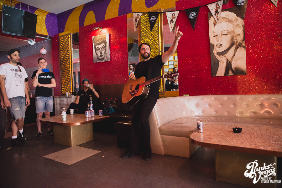 In the midst of the mayhem going on during Punk Rock Bowling weekend, the Beauty Bar played host to a number of unofficial shows. One was a quiet gig sponsored by us and put on by Suckerpunch Records and Brock Frabbiele.