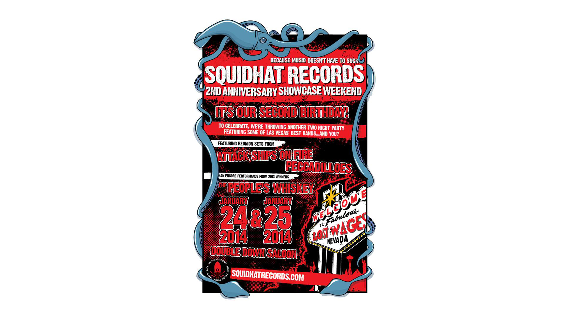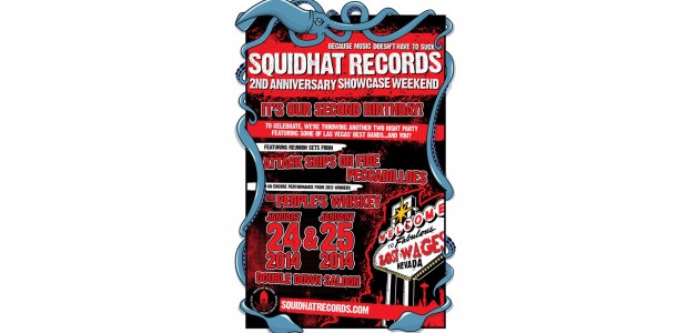 The full lineup has been announced for the SquidHat Records’ birthday showcase. The two night event, which takes place Friday, January 24th and Saturday, January 25th at the Double Down Saloon features, among other things, reunion sets from Attack Ships on Fire and Peccadilloes, an encore set from The People’s Whiskey, whose set last year ended with them signing to the label, and sets from non SquidHat bands including folk punk group Bobby Meader Music and Mercy Music, aka Deadhand’s Brendan Scholz.