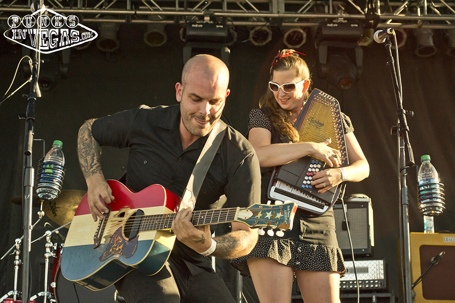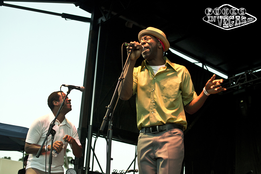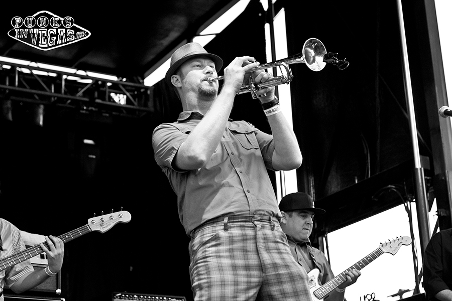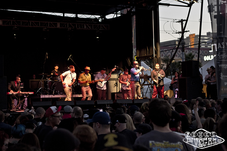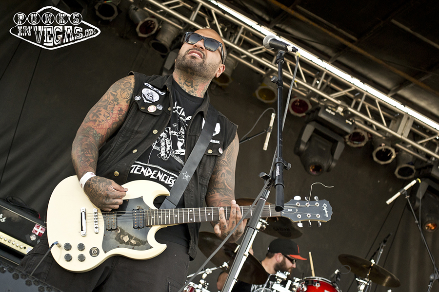 The Punk Rock Bowling 14 midway point was upon us and the weather decided to do a little rebelling of its own, replacing the calm breeze of the previous day with oven-baked hotness. The crowd was undeterred, however, as the only day show to sell out boasted British oi! pioneers Cockney Rejects (filling in for a canceled Sham 69), the always fun yet seldom touring Hepcat, and of course headliners Rancid! In what is surely a quest to make me feel old, my favorite band from middle school is celebrating their 20th year together this year and frontman Tim Armstrong used the occasion to wax nostalgia, about both Rancid’s tour history as well as Operation Ivy (whom he said played Vegas in the late 80s at a desert show, something I would have killed to see if only I was out of grade school at the time). The nostalgia dripped into the band’s setlist as well, with the foursome sticking primarily to songs from their much beloved first four records. When not indulging the crowd with hits like “Radio,” “Roots Radical” and “Ruby Soho” they were making use of the communal atmosphere to bring out a special guest – Armstrong’s Transplant bandmate Skinhead Rob to rap on later track “Red Hot Moon” from the band’s 2003 release Indestructible. Rancid always puts on a good show and this was no exception, with Armstrong’s constant jump-and-twirl motion contrasting with bass player extraordinaire Matt Freeman’s stoic stance and lightning fast fingers leaving the audience in awe, particularly during the ever popular solo on “Maxwell Murder.”
