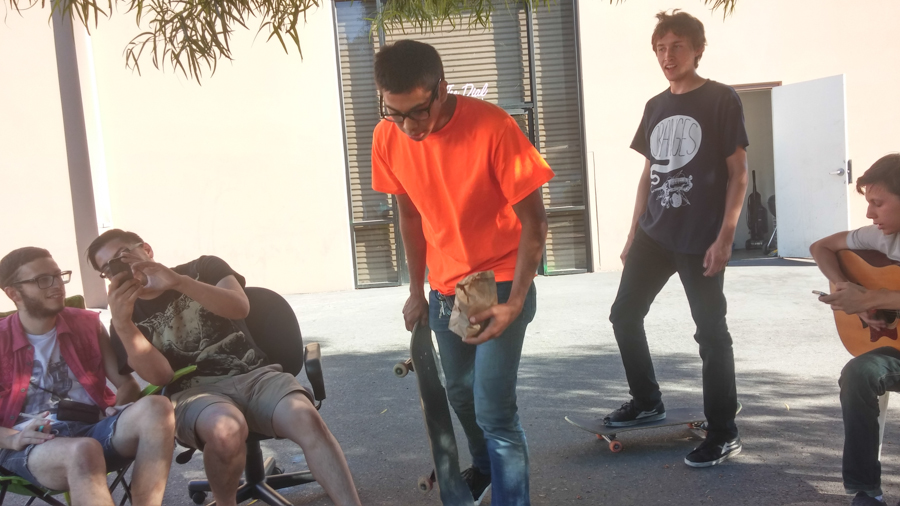 Day 4: Stayed in Alta Vista. Woke up and played guitar on the patio for a little. Ate ramen with yellow curry powder, hell yeah. Life is beautiful. Headed to The Dial. Sat under the tree of life and played guitar in perfect weather. Nick ollied a 3 stack pallet and bruised his dumb foot. Had some van beers and Zach ate an orange. Saw our friends Zach Navis and the boys and girl in My Iron Lung. Watched Recluse play, they were fckn good. Went to a closed Albertsons, missin’ all that 24 hours garbage in garbage town Las Vegas. Learned that ramen has pulverized chicken in there wtf ain’t eating tonight. Peace.