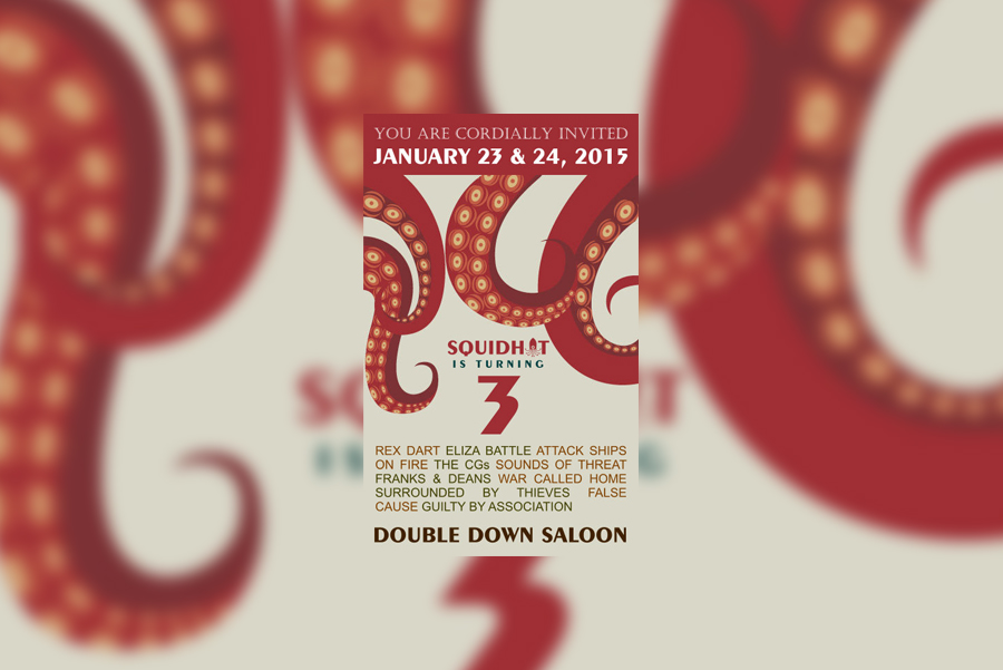 Our pals at SquidHat Records have announced details on their third annual label showcase. Once again taking place at the Double Down Saloon, this year’s event is hosted by Professor Rex Dart and will be held January 23-24, 2015.