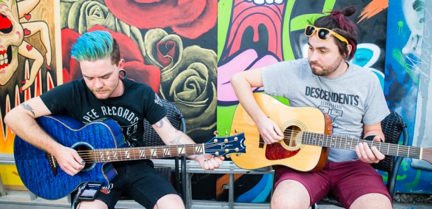 Coming from Australia, it’s The Decline! And if the name doesn’t instantly recall memories of NOFX, their brand of poppy skatepunk sure will. We recorded two songs acoustically with The Decline’s Pat Decline and Ben Elliott behind the Beauty Bar while they were in town with MakeWar a few weeks back.