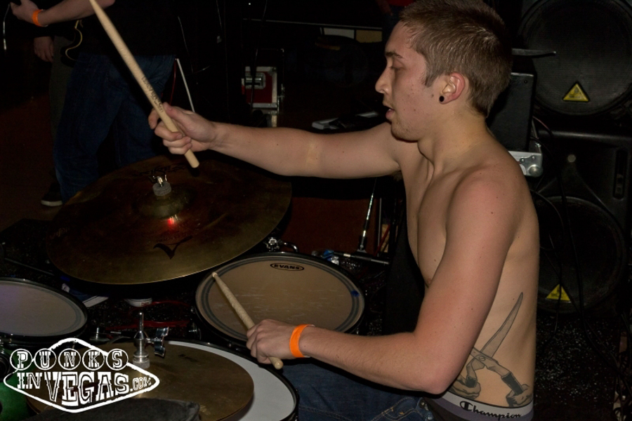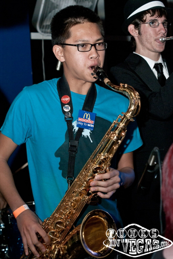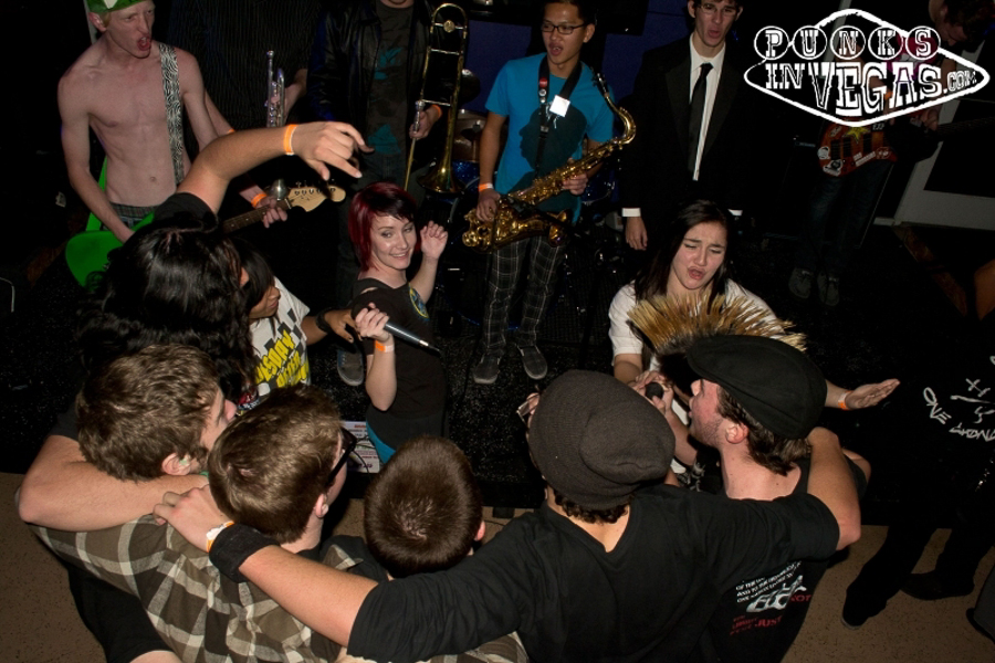 The Sheds, visiting from Agoura Hills, CA, anchored the show with an excellent blend of punk and ska. Songs from this year’s …And Now For Something Completely Different and the just released (digitally, at least) Self/Doubt got the crowd dancing and singing along during the band’s energetic set. Having followed them around Fremont Street all day filming very low-key Stripped Down Sessions, it was pretty cool to see the band, particularly frontman Mac Miller, go into full screaming, jumping performance mode, much to the crowd’s excitement.
