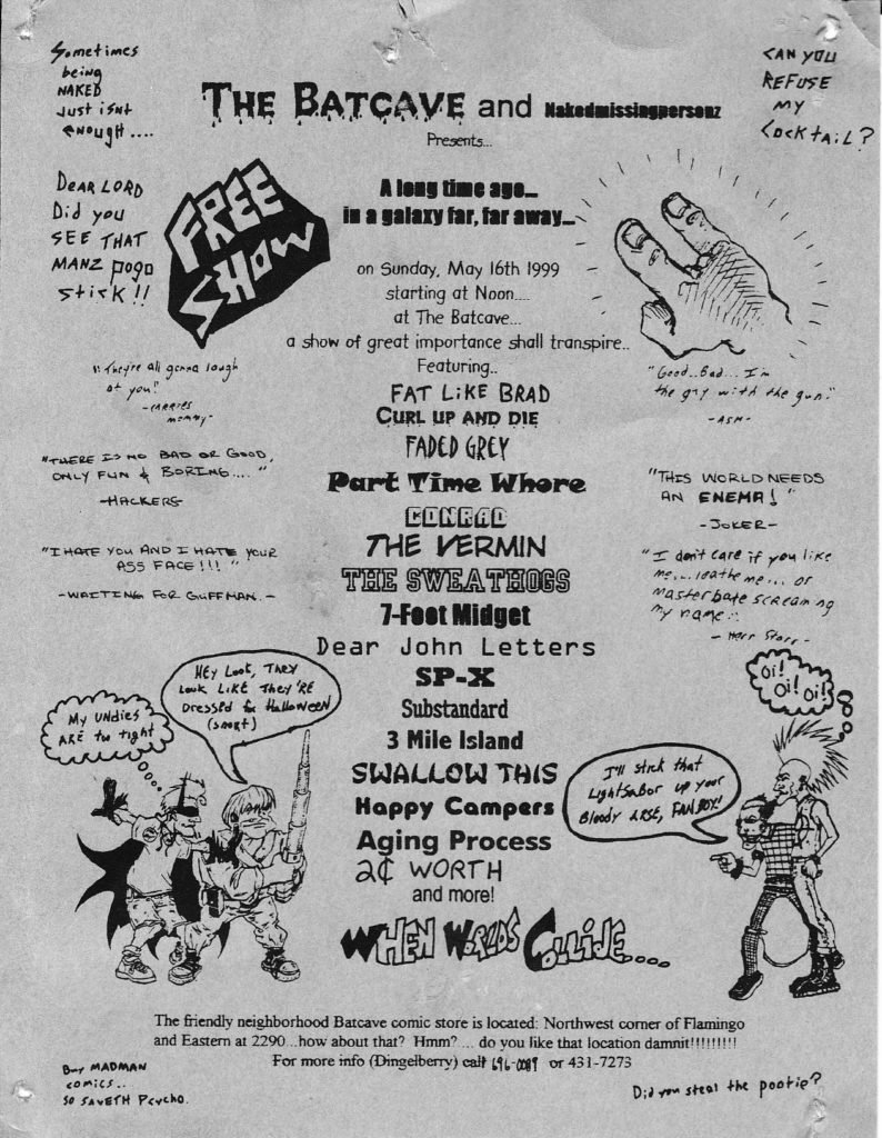 Those Tomb shows were something else. I remember running across the desert with my amp because the cops were chasing me. They found out about the show somehow, and kids scattered like ants. That might’ve been a different band, now that I think about it.