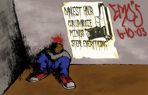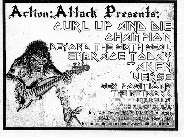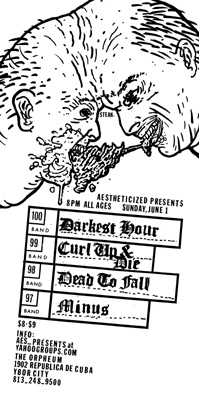 Mike: The singer bit our friend Dave [Gorum], who did all the artwork for the Curl Up and Die stuff. While they were playing, he just went ahead and bit him!