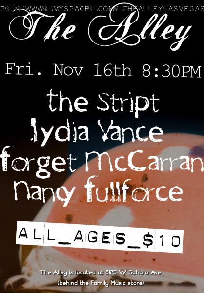 I feel when Lydia Vance started, that was the beginning of the Vegas scene doing what it does now, in my eyes anyway: Bands and friends sticking together, regardless of genre. We’d play countless shows with bands that were different from us, but we’d come out, the people would come out, and we’d all have a good time. I feel like I’m still in that position here today, even more than then really.