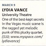 I saw Lydia Vance dozens of times. One of the shows that stands out years later was back in 2007 at University Theatre when they opened for Sparta. They always were so explosive on stage with their raw energy.