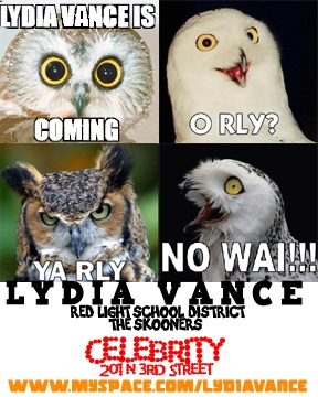 Lydia Vance was always the tightest band in town. They were all true rock `n’ rollers. I remember them all blasting Andrew W.K. until sunrise. Brendan was super humble and modest off stage, but onstage, that dude would play solos behind his back, and with his teeth and shit. I always hated having to follow Lydia Vance when we did, but it honestly made us (The Skooners) try a lot harder.