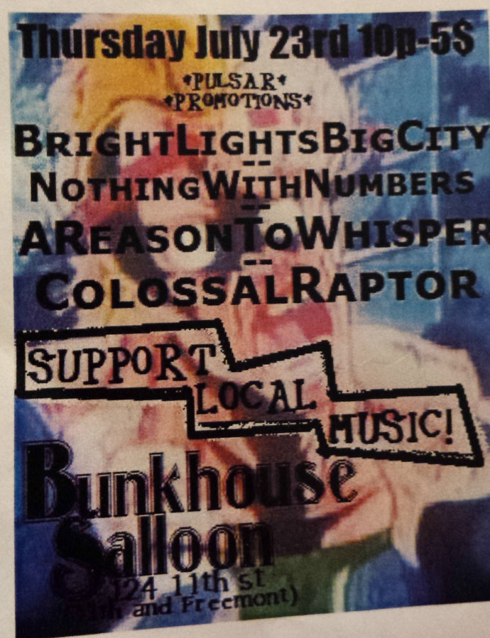 Nothing With Numbers shows were always an interesting thing with us in the lineup. Little too heavy for punk but not heavy enough for metal. We played with a variety of bands. Many of which would become our dear friends in time.