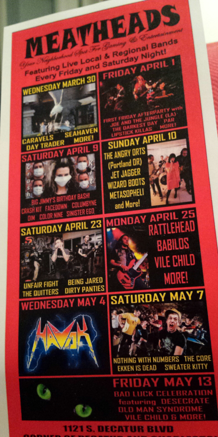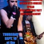 One event stands out from the all the other shows, where we were lucky enough to get our faces melted by NWN. It was at the Bunkhouse [Saloon], sometime before 2011. As Sean was doing his thing up front, screaming like a banshee and jumping around like the floor was on fire, he swung his mic cord above his head like a helicopter blade. It seemed like the radius of the swing lengthened with each revolution. Then I heard a “Pop!” Tyler’s face had just been annihilated by the swinging microphone of death. Even as he was dazed and confused by the sudden impact, Tyler never stopped thrashing on his bass even as the blood slowly trickled down the side of his face. The set continued, as if nothing happened because let’s be blunt here, this did not seem out of place at a NWN gig. I absolutely loved playing shows with them.